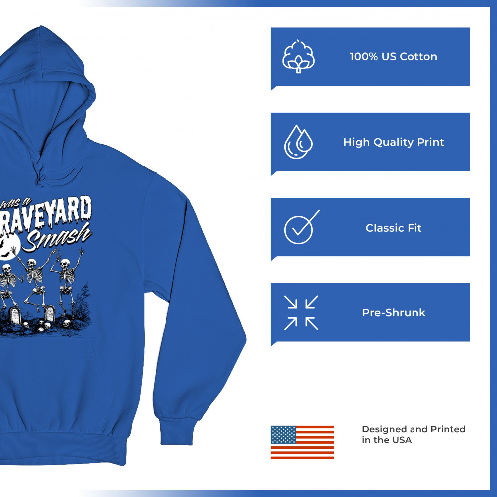 Celebrate Halloween with a fun "Graveyard Smash" design featuring dancing skeletons. Perfect for parties and haunted house events!
