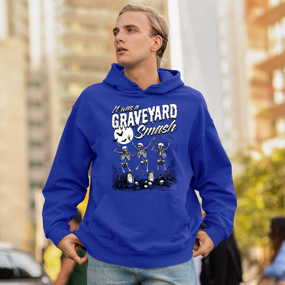 Add a touch of spooky fun to your Halloween attire with this "Graveyard Smash" design, showcasing skeletons dancing under the moonlight in a graveyard. Ideal for anyone who loves Halloween, this graphic tee is perfect for parties, haunted houses, or casual trick-or-treating. Made from high-quality materials, it offers both comfort and style, ensuring you look great while embracing the festive spirit. Available in multiple sizes, this shirt is a must-have for your Halloween collection.