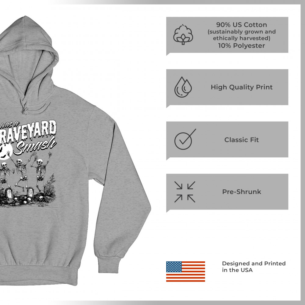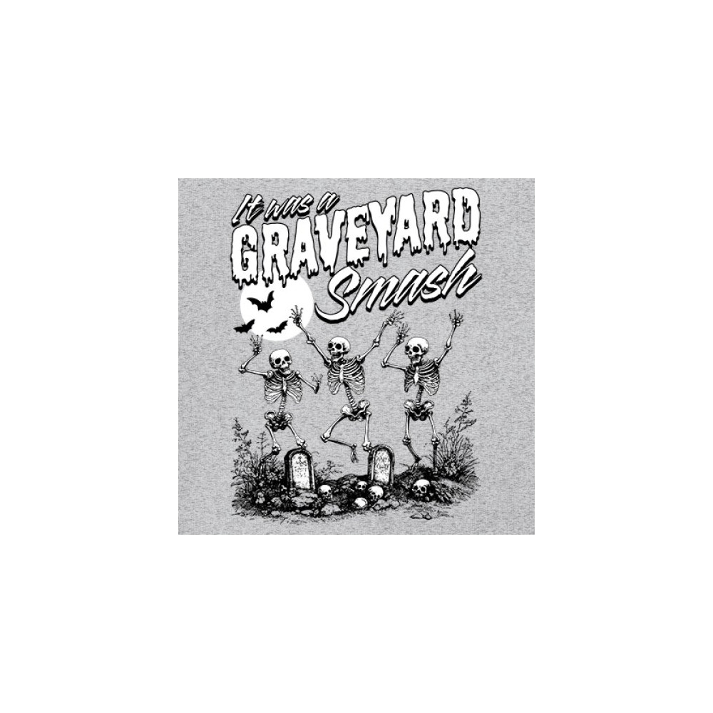 Celebrate Halloween with a fun "Graveyard Smash" design featuring dancing skeletons. Perfect for parties and haunted house events!