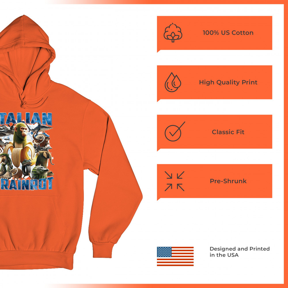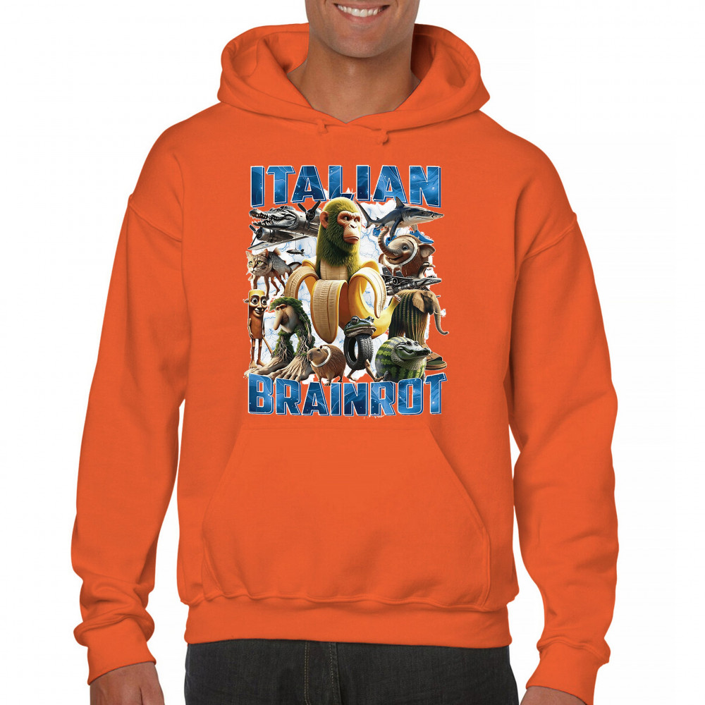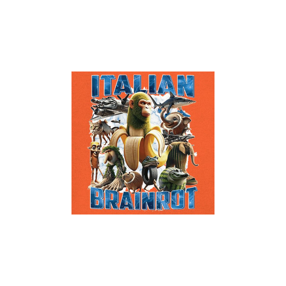 This design captures the full force of Italian brainrot—bananas, sharks, monkeys, and meme beasts collide in an unfiltered internet-core explosion. Perfect for fans of cursed humor, Gen Z trends, absurd fashion, TikTok memes, ironic style, surreal pop art, chaotic culture, digital nonsense, Gen Alpha brainrot, and hyper-online energy.