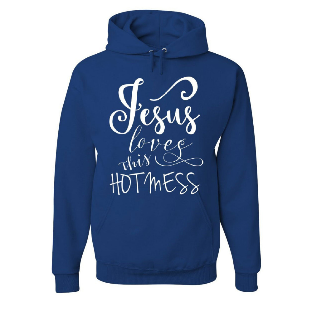 JESUS LOVES THIS HOT MESS hoodie funny religious christian lord sweatshirt royal blue