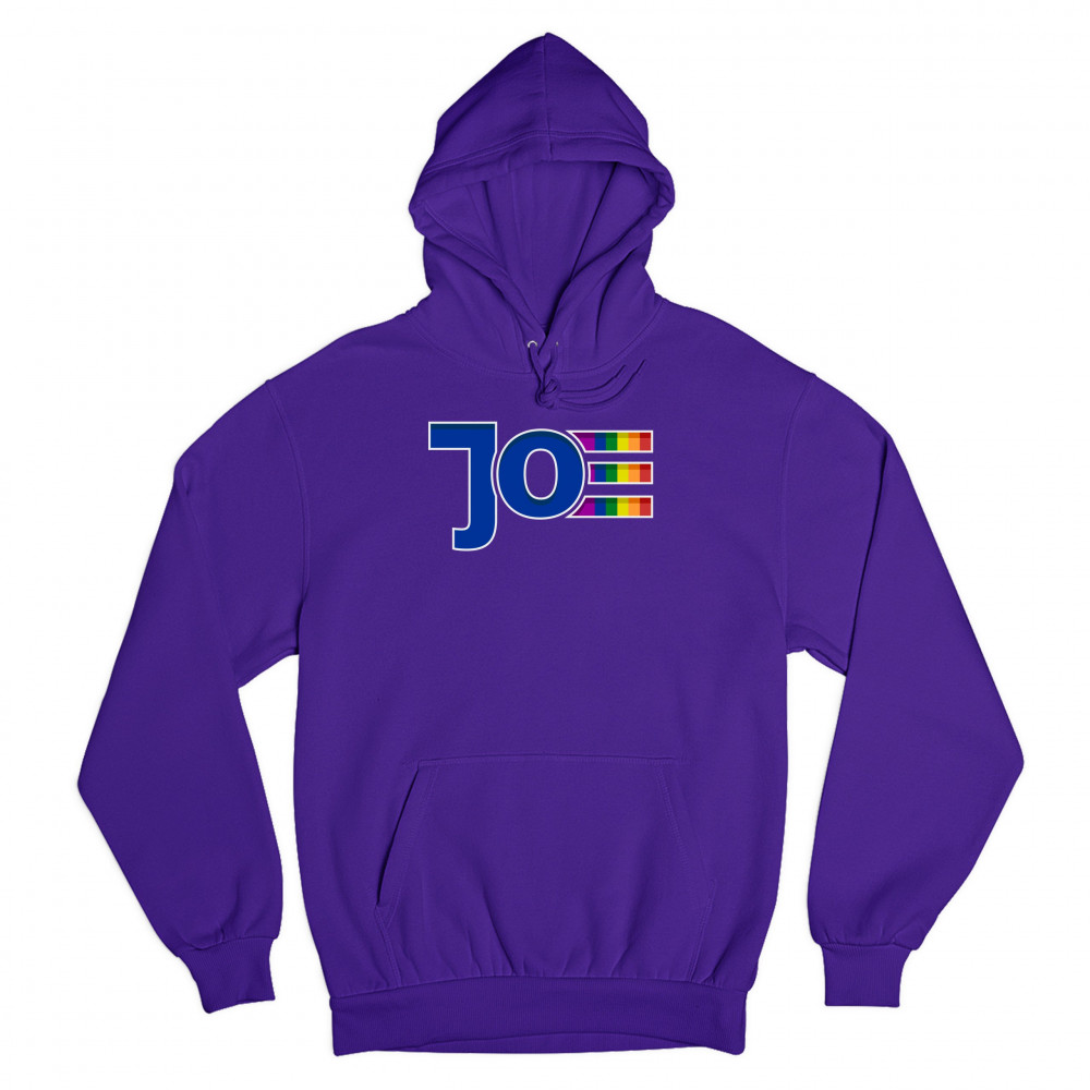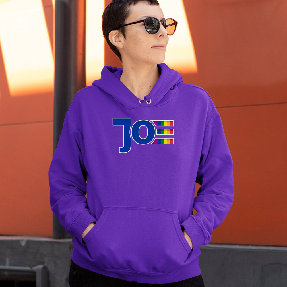 A political print featuring the name of the democratic presidential candidate "Joe". The letter "e" is painted with the colors of the lgbt rainbow. It is a great choice to wear to show your support for the democratic presidential nominee and his vice pres
