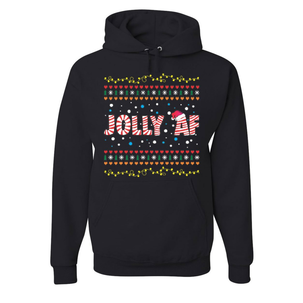 JOLLY AF hoodie funny christmas eve holiday spirit xmas santa sweatshirt black