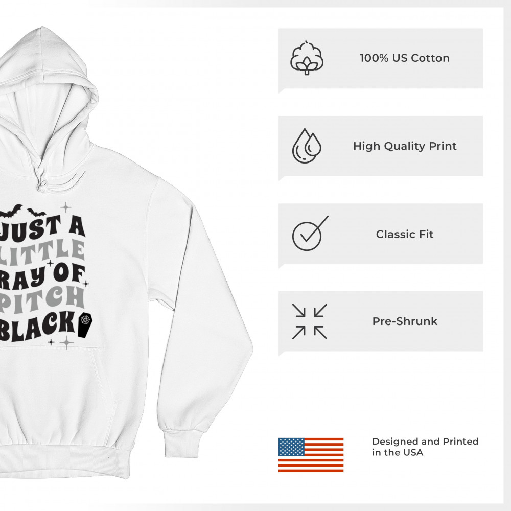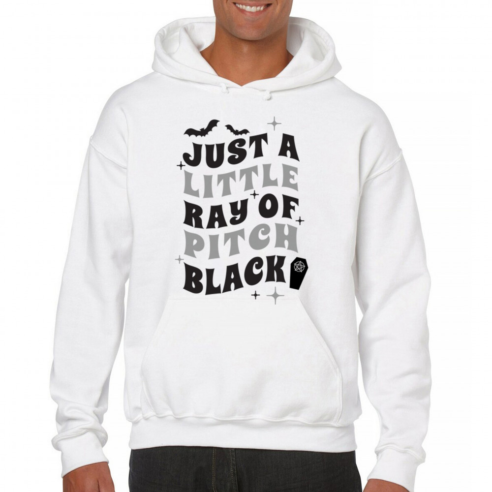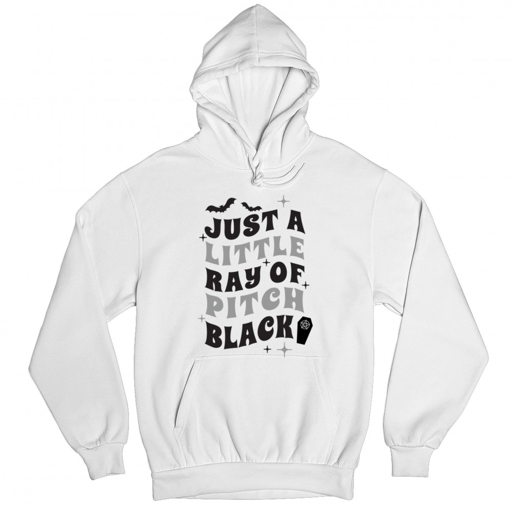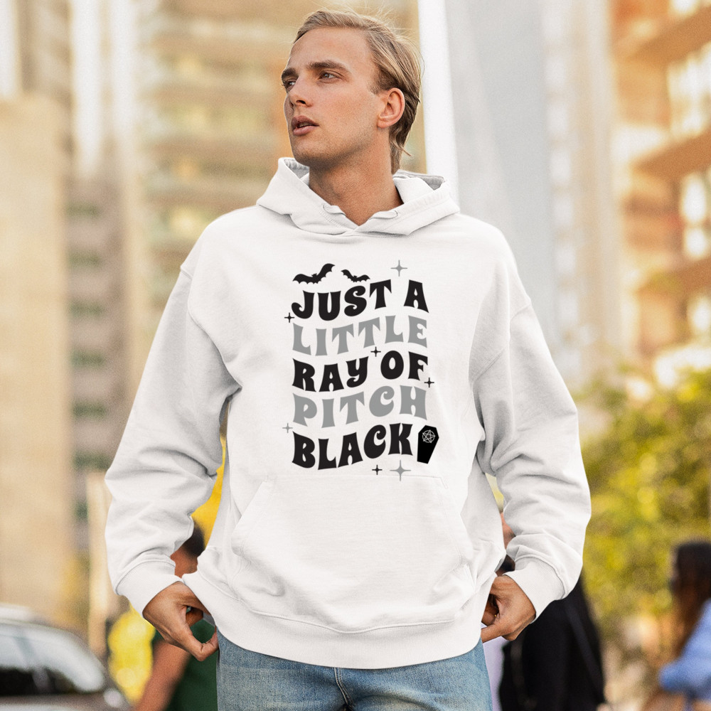 Showcase your dark humor with the "Just a Little Ray of Pitch Black" design—perfect for Halloween or everyday gothic style.