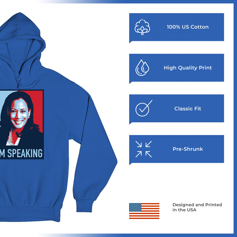 Featuring the iconic "I'm Speaking" image of Kamala Harris, this design is perfect for showing your support for the Harris-Walz 2024 campaign. The red, white, and blue colors make a bold statement, celebrating the values of equality and justice. With a focus on liberal values, including LGBTQ+ rights, women's empowerment, and progressive policies, this design is ideal for rallies or everyday wear. Stand up for what you believe in and wear this design with pride. "Let's Win This"