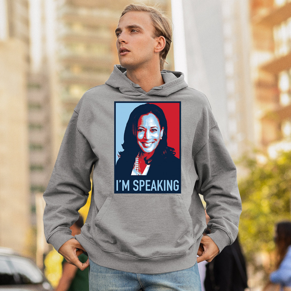 Show your support for Kamala Harris and Tim Walz with this "I'm Speaking" design. A bold statement celebrating liberal values and progressive policies. "Let's Win This"