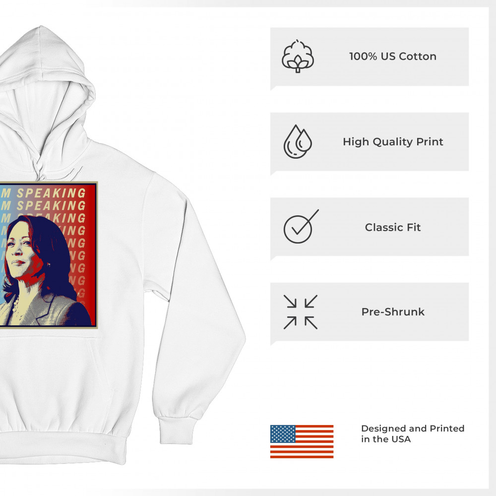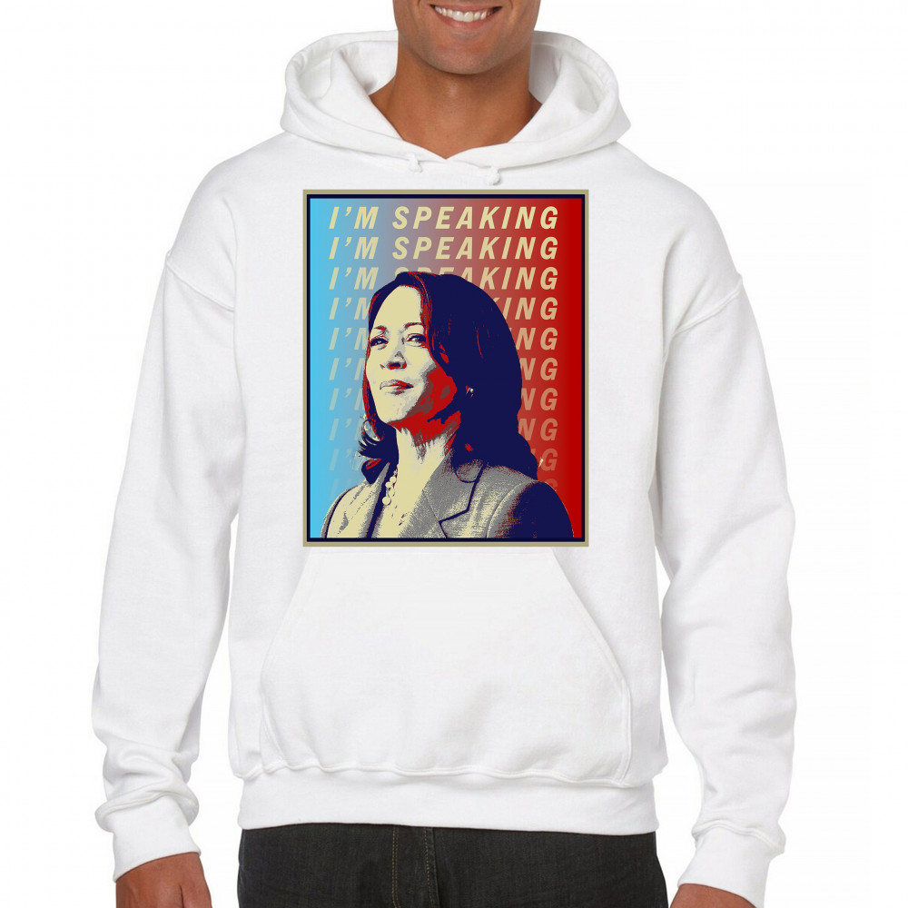 Support Kamala Harris with this bold and inspiring design. "I'M SPEAKING" echoes her powerful voice in the political arena, making it perfect for anti-Trump supporters, liberals, and Democrats. Crafted from durable materials, this design is comfortable for any event, from rallies to casual outings. Celebrate diversity and the historic candidacy of the potential first female president, resonating with black Americans, Hispanic Americans, LGBTQ supporters, and other minorities. Make a statement of hope and progress with this unique design.
