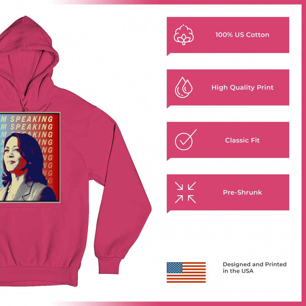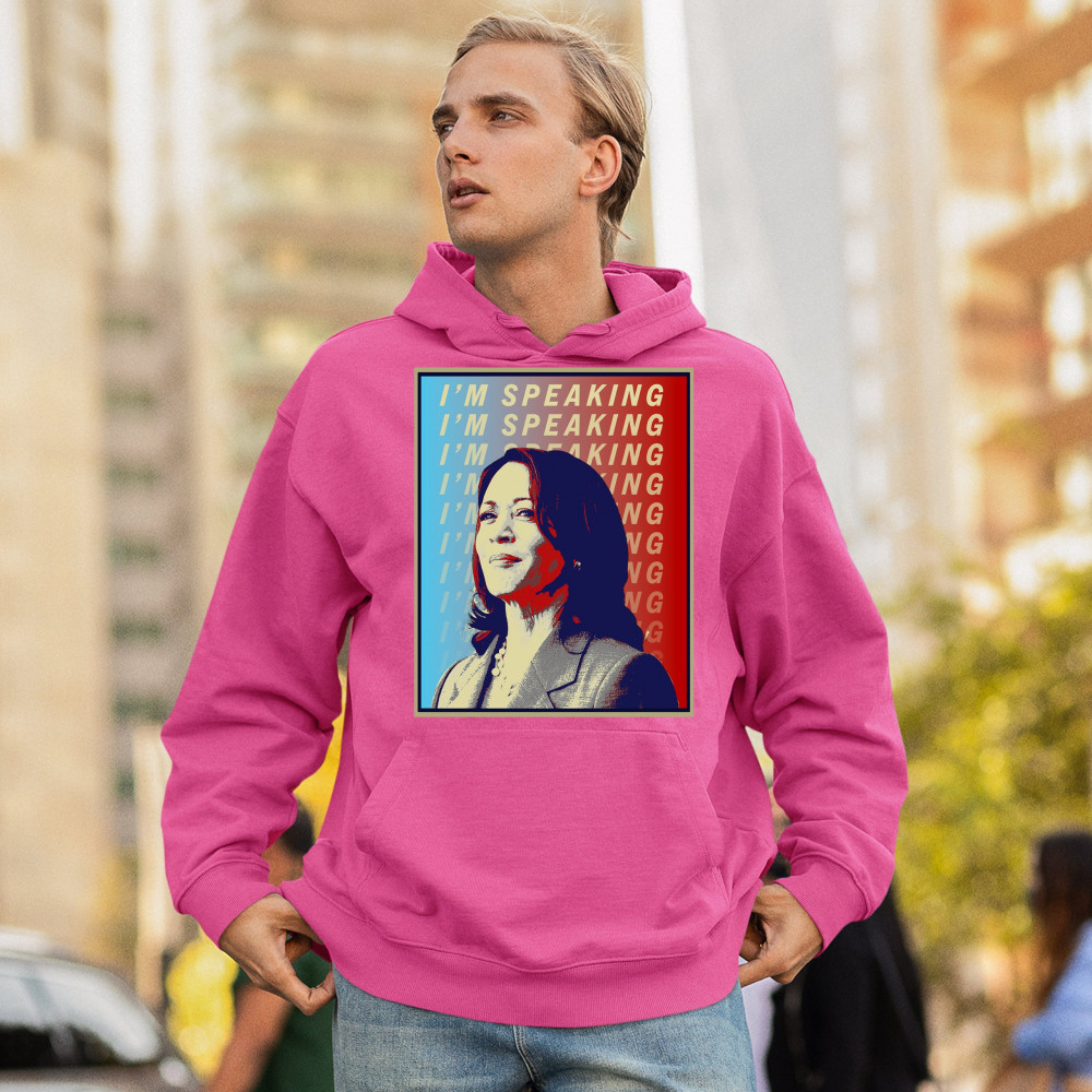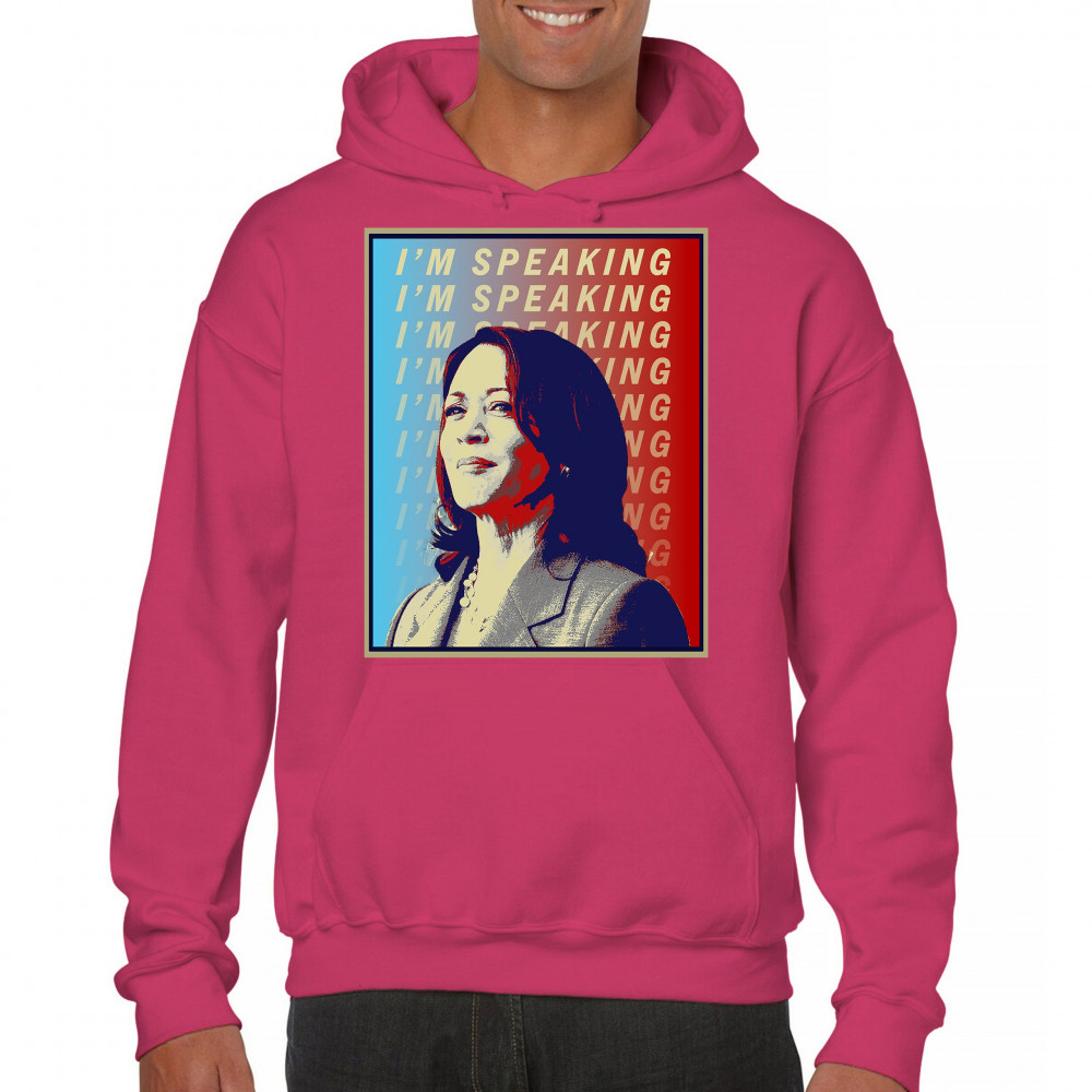 Support Kamala Harris with this bold and inspiring design. "I'M SPEAKING" echoes her powerful voice in the political arena, making it perfect for anti-Trump supporters, liberals, and Democrats. Crafted from durable materials, this design is comfortable for any event, from rallies to casual outings. Celebrate diversity and the historic candidacy of the potential first female president, resonating with black Americans, Hispanic Americans, LGBTQ supporters, and other minorities. Make a statement of hope and progress with this unique design.