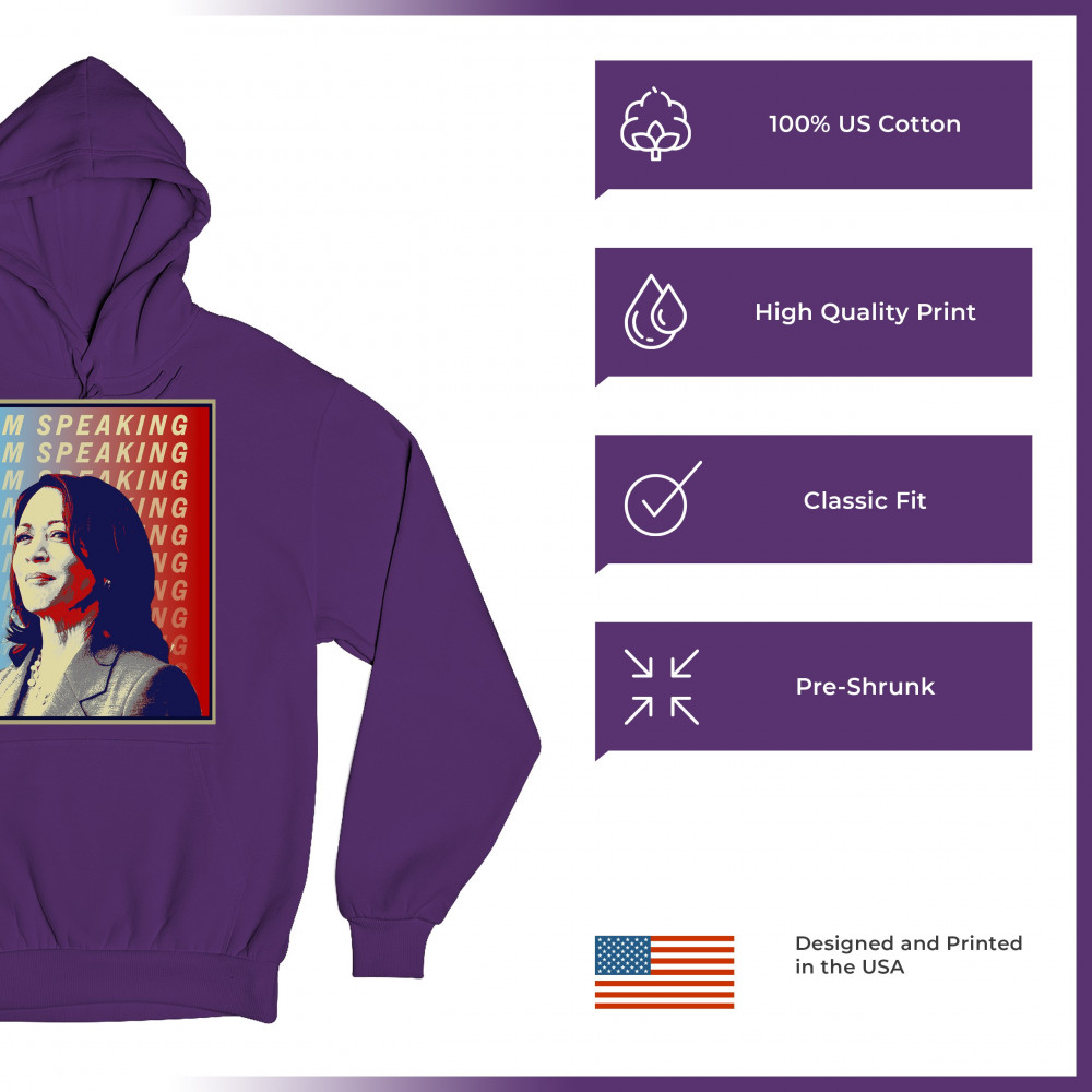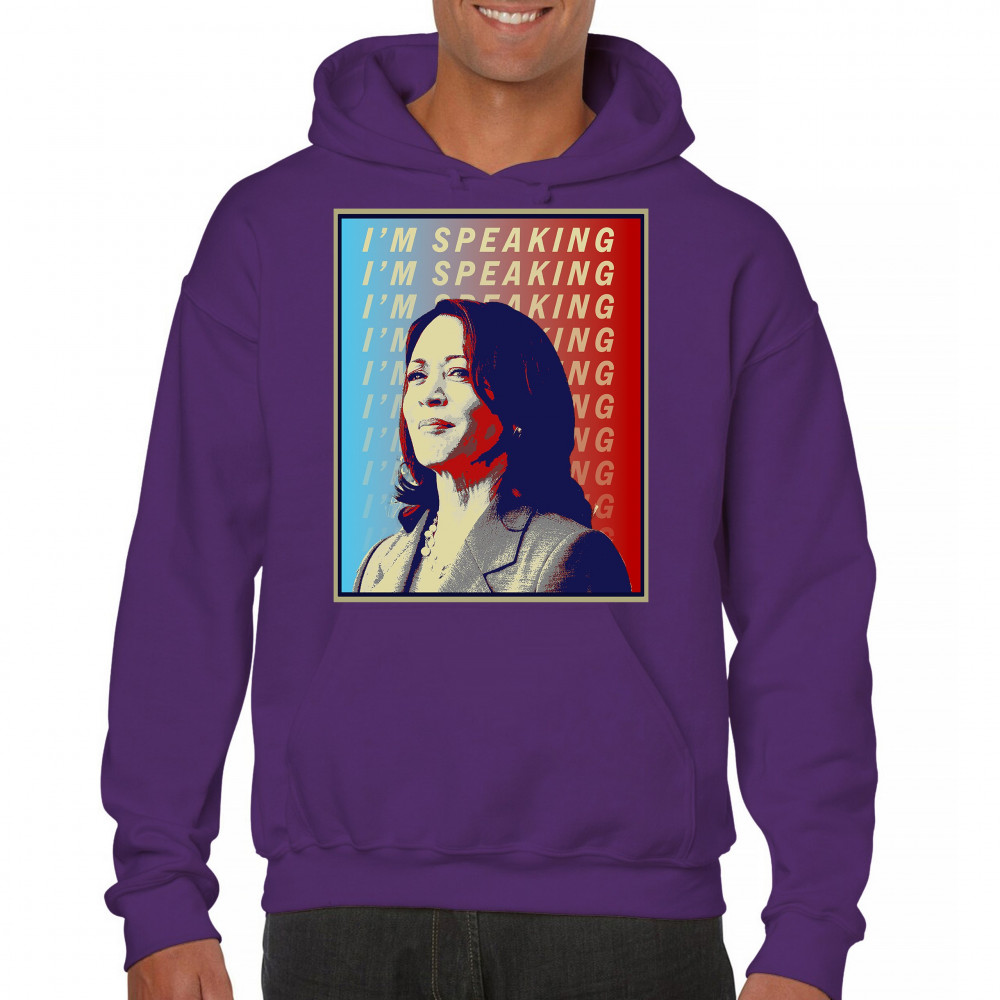 Support Kamala Harris with this bold and inspiring design. "I'M SPEAKING" echoes her powerful voice in the political arena, making it perfect for anti-Trump supporters, liberals, and Democrats. Crafted from durable materials, this design is comfortable for any event, from rallies to casual outings. Celebrate diversity and the historic candidacy of the potential first female president, resonating with black Americans, Hispanic Americans, LGBTQ supporters, and other minorities. Make a statement of hope and progress with this unique design.