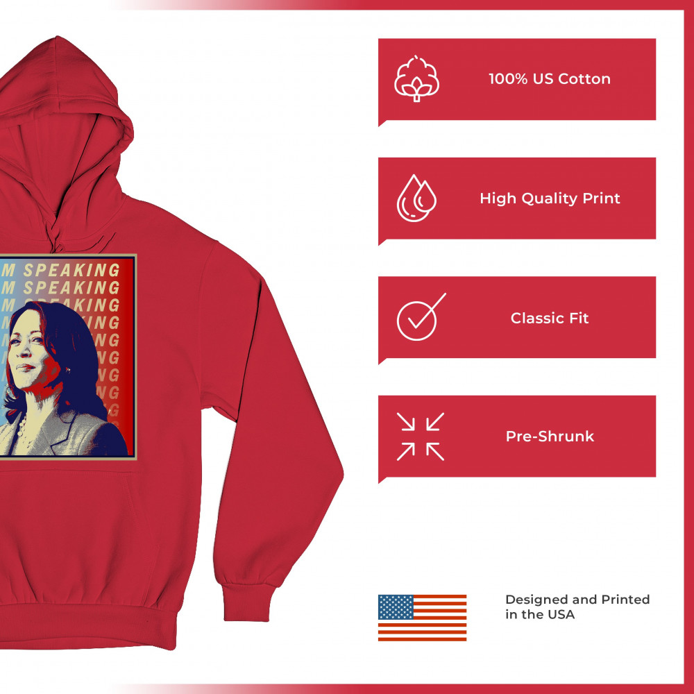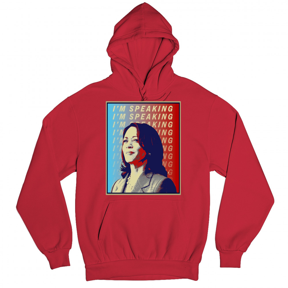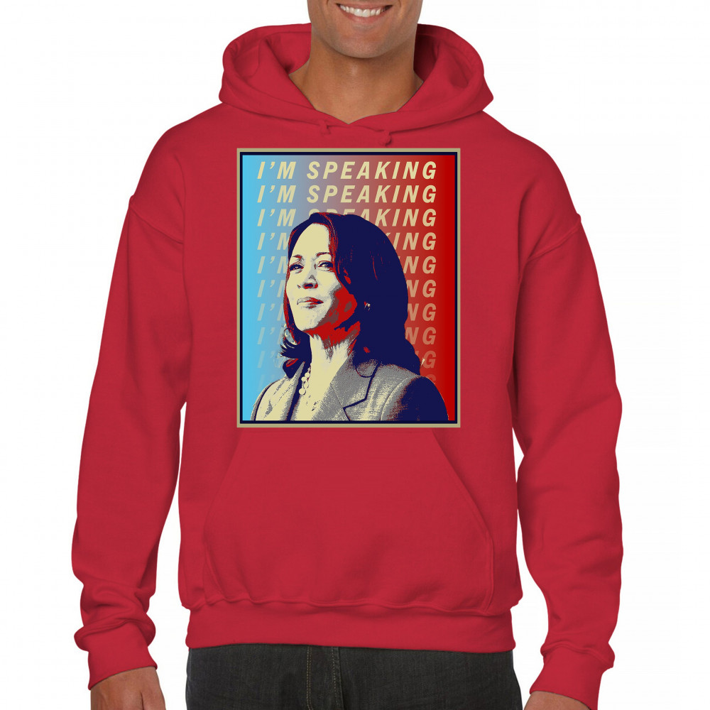 Support Kamala Harris with this bold and inspiring design. "I'M SPEAKING" echoes her powerful voice in the political arena, making it perfect for anti-Trump supporters, liberals, and Democrats. Crafted from durable materials, this design is comfortable for any event, from rallies to casual outings. Celebrate diversity and the historic candidacy of the potential first female president, resonating with black Americans, Hispanic Americans, LGBTQ supporters, and other minorities. Make a statement of hope and progress with this unique design.
