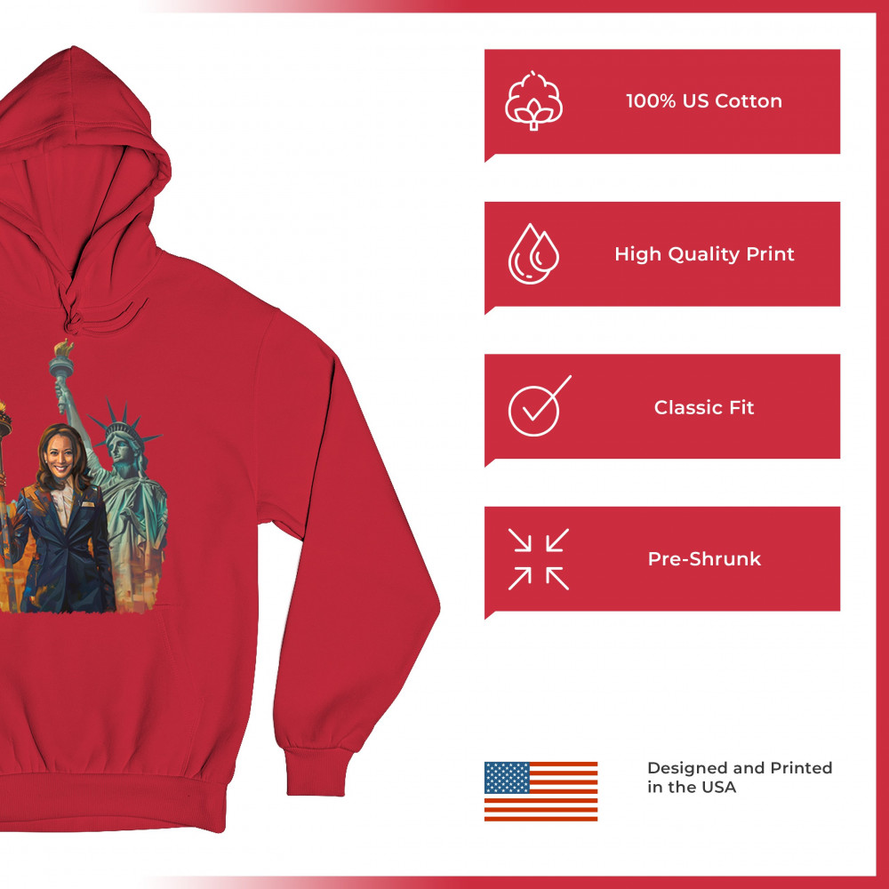 Show your support for Harris-Walz 2024 with this bold design featuring Kamala Harris and the Statue of Liberty. Stand for justice, equality, and a brighter future.