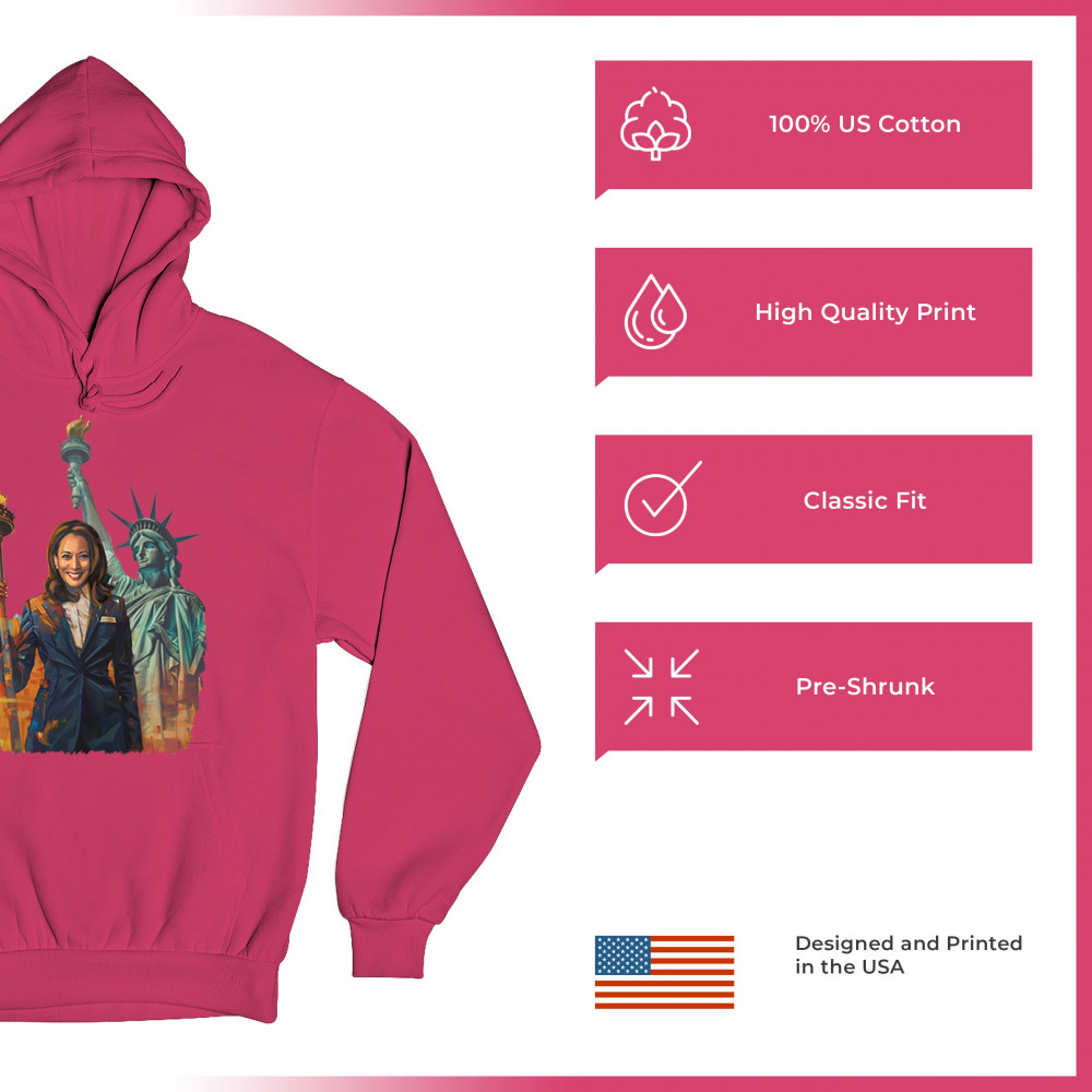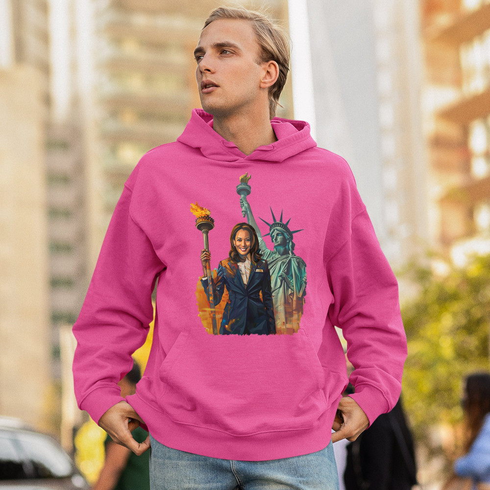 Show your support for Harris-Walz 2024 with this bold design featuring Kamala Harris and the Statue of Liberty. Stand for justice, equality, and a brighter future.