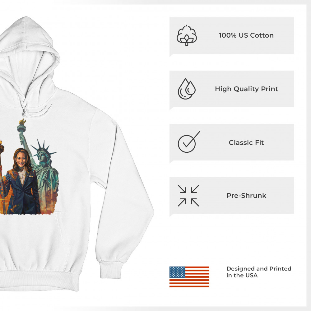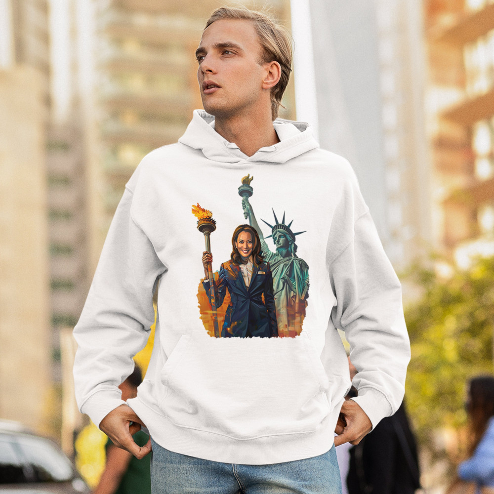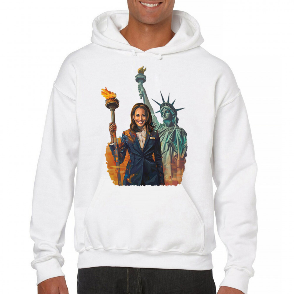 Show your support for Harris-Walz 2024 with this bold design featuring Kamala Harris and the Statue of Liberty. Stand for justice, equality, and a brighter future.