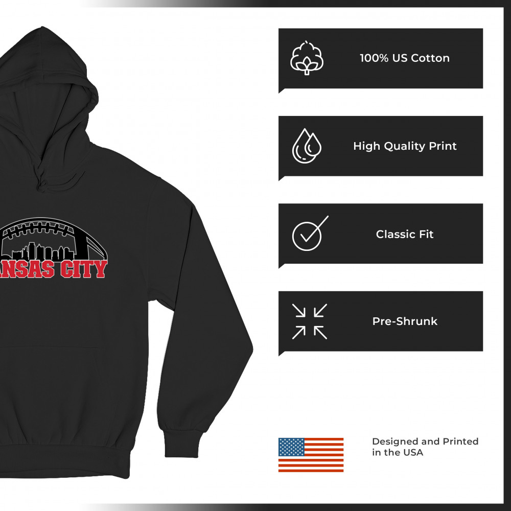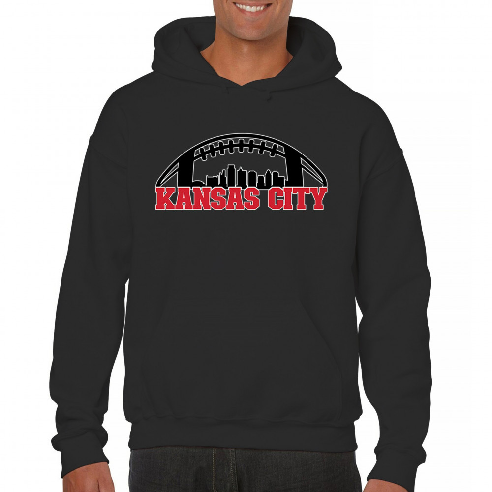 KANSAS CITY FOOTBALL sweatshirt k.c. skyline champions game day fan hoodie black