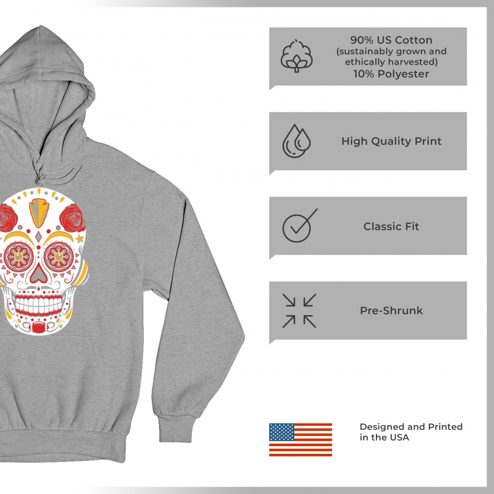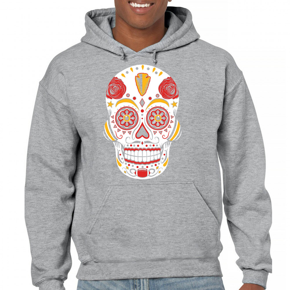 Celebrate Kansas City football with this Sugar Skull design inspired by Dia de los Muertos. Featuring Heart of America pride, red & gold tradition, and City of Fountains identity, it’s made for playoff energy, tailgate culture, and fantasy league rivalries. A bold calavera for KC fans.