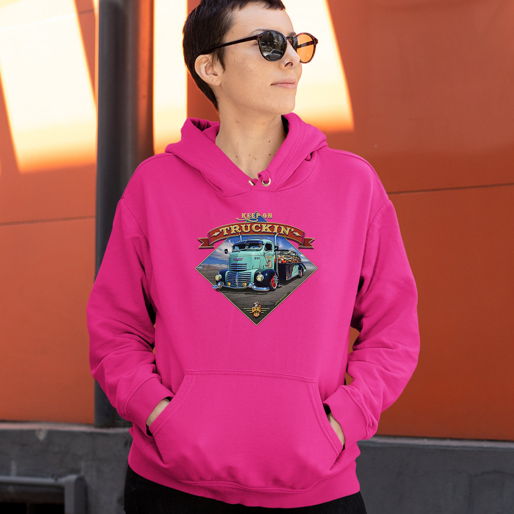 KEEP ON TRUCKIN' sweatshirt route 66 retro vintage truck driver hoodie pink