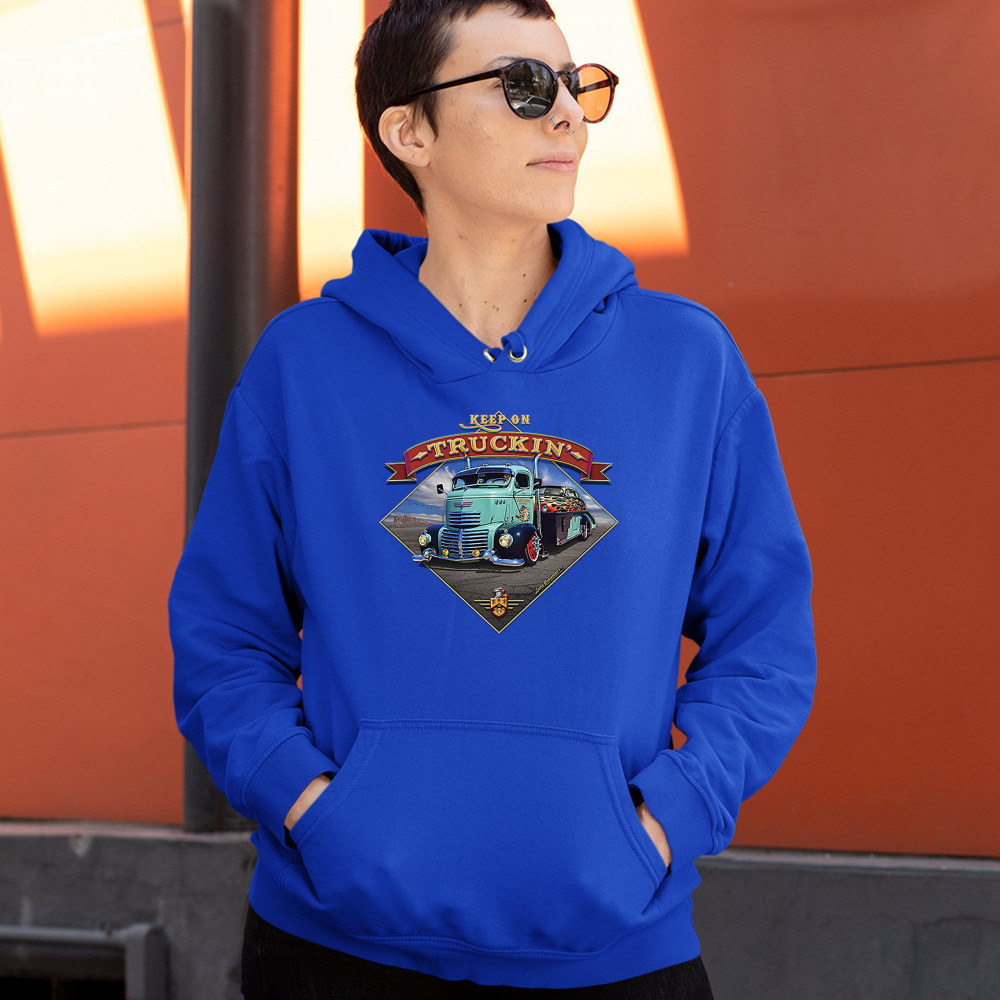 KEEP ON TRUCKIN' sweatshirt route 66 retro vintage truck driver hoodie royal blue
