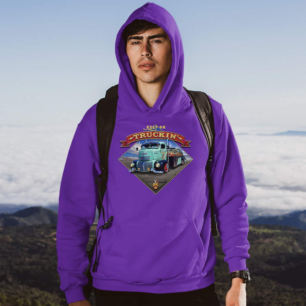 KEEP ON TRUCKIN' sweatshirt route 66 retro vintage truck driver hoodie purple