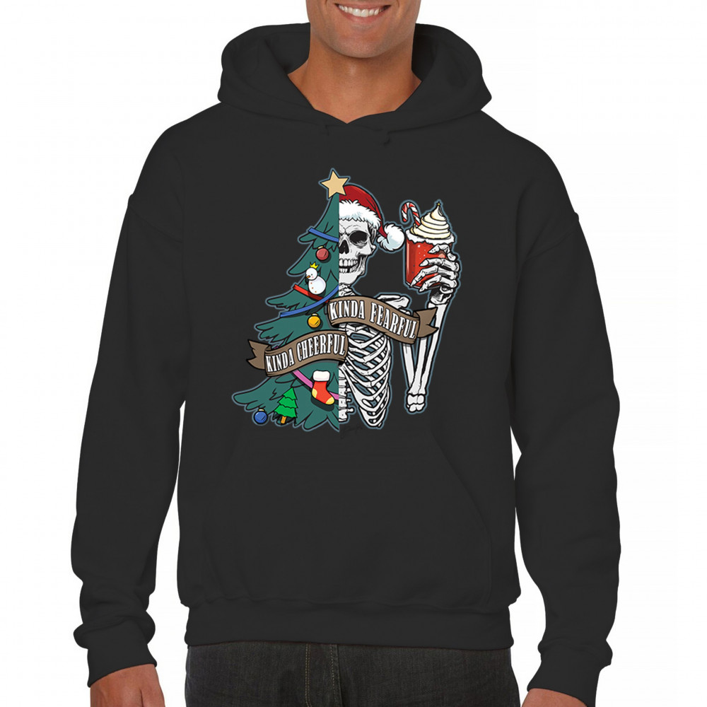 This creative Kinda Cheerful, Kinda Fearful design is a perfect blend of festive and spooky fun! Featuring a half-decorated Christmas tree and skeleton, it’s ideal for those who love combining Halloween and Christmas vibes. Great for secret Santa gifts, matching holiday pajamas, or rocking at your next ugly sweater contest. Perfect for office parties, family mornings, or simply adding some unique charm to your Feliz Navidad celebrations.
