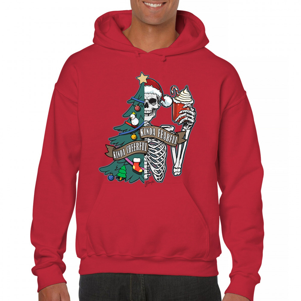 This creative Kinda Cheerful, Kinda Fearful design is a perfect blend of festive and spooky fun! Featuring a half-decorated Christmas tree and skeleton, it’s ideal for those who love combining Halloween and Christmas vibes. Great for secret Santa gifts, matching holiday pajamas, or rocking at your next ugly sweater contest. Perfect for office parties, family mornings, or simply adding some unique charm to your Feliz Navidad celebrations.