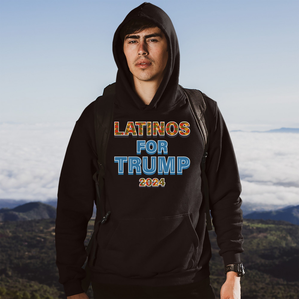 LATINOS FOR TRUMP 2024 sweatshirt keep america great conservative maga hoodie black