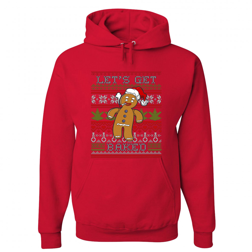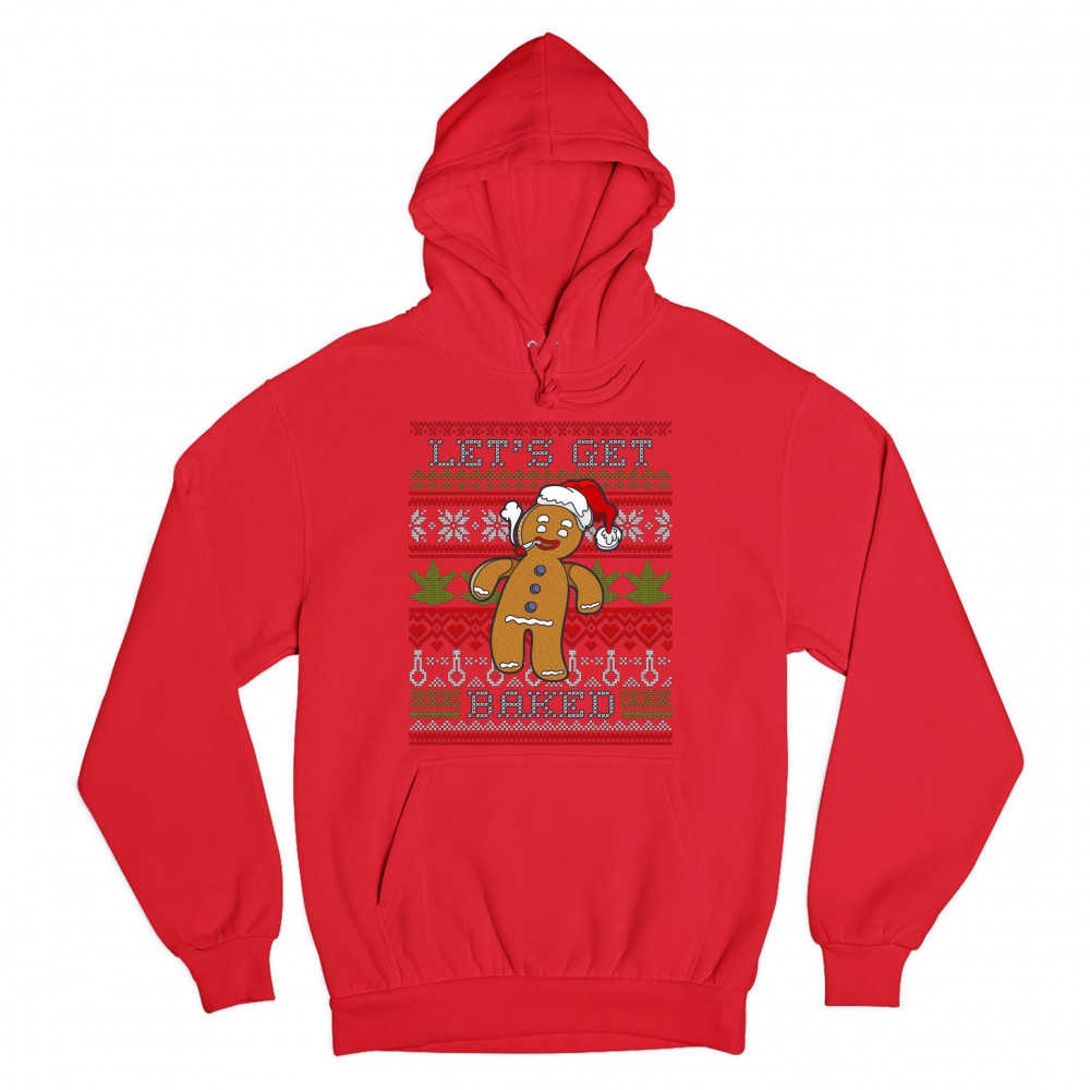 LET'S GET BAKED sweatshirt ugly sweater gingerbread man 420 marijuana hoodie red