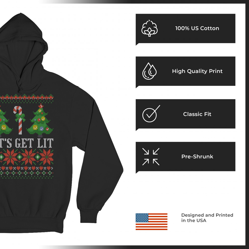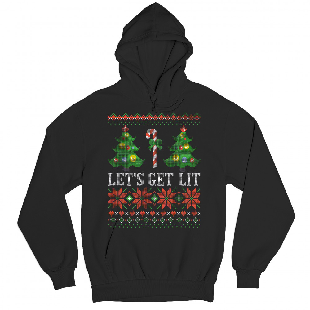 LET'S GET LIT sweatshirt ugly sweater merry christmas candy cane hoodie black