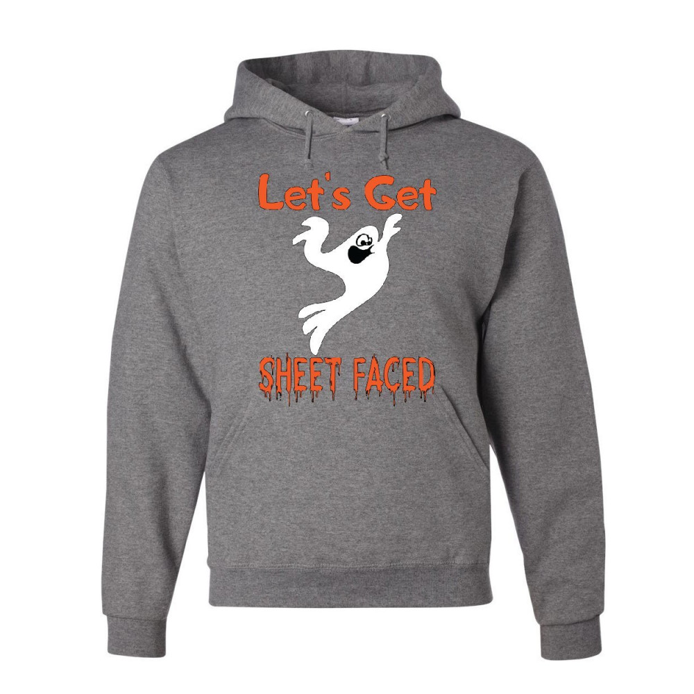 LET'S GET SHEET FACED hoodie funny drinking ghost halloween boo sweatshirt gray