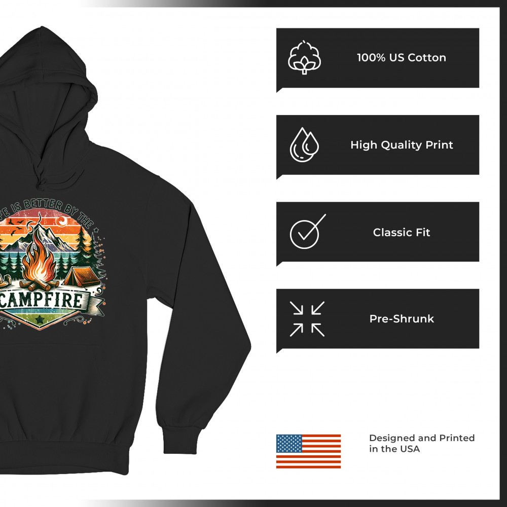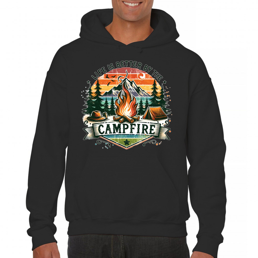 Life is Better by the Campfire brings rustic charm and outdoor adventure together with a glowing fire, mountain scenery, and pine forest. Ideal for forest lovers, campers, and national park explorers, this design evokes wilderness vibes, tent life, and the thrill of travel. Great value for anyone who believes adventure begins under the stars.
