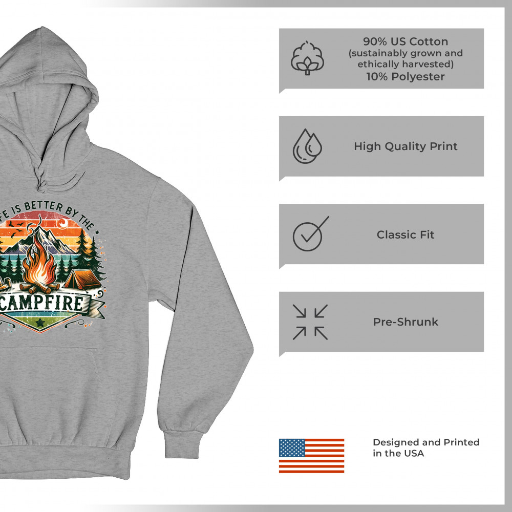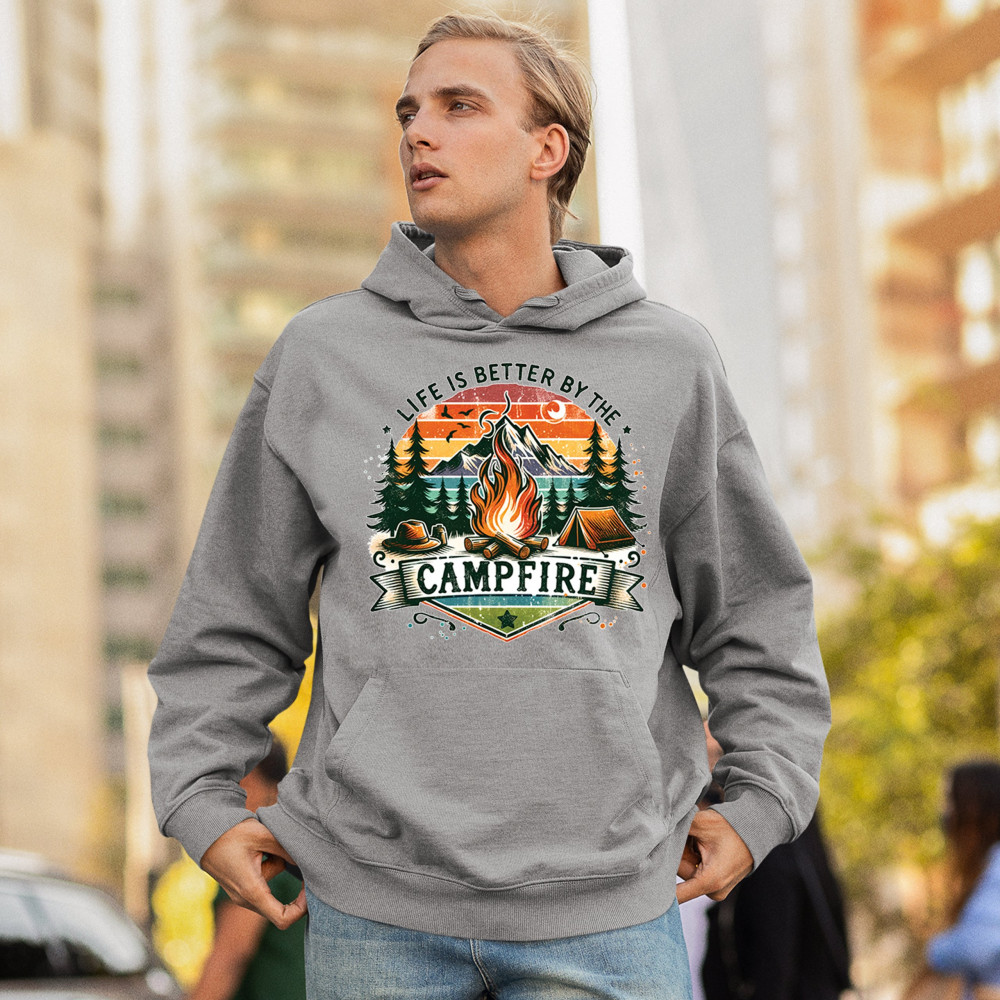 Life is Better by the Campfire brings rustic charm and outdoor adventure together with a glowing fire, mountain scenery, and pine forest. Ideal for forest lovers, campers, and national park explorers, this design evokes wilderness vibes, tent life, and the thrill of travel. Great value for anyone who believes adventure begins under the stars.