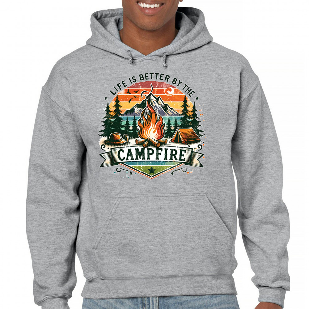 Life is Better by the Campfire captures outdoor adventure, wilderness vibes, campfire moments, and nature escapes for travel and camping fans.