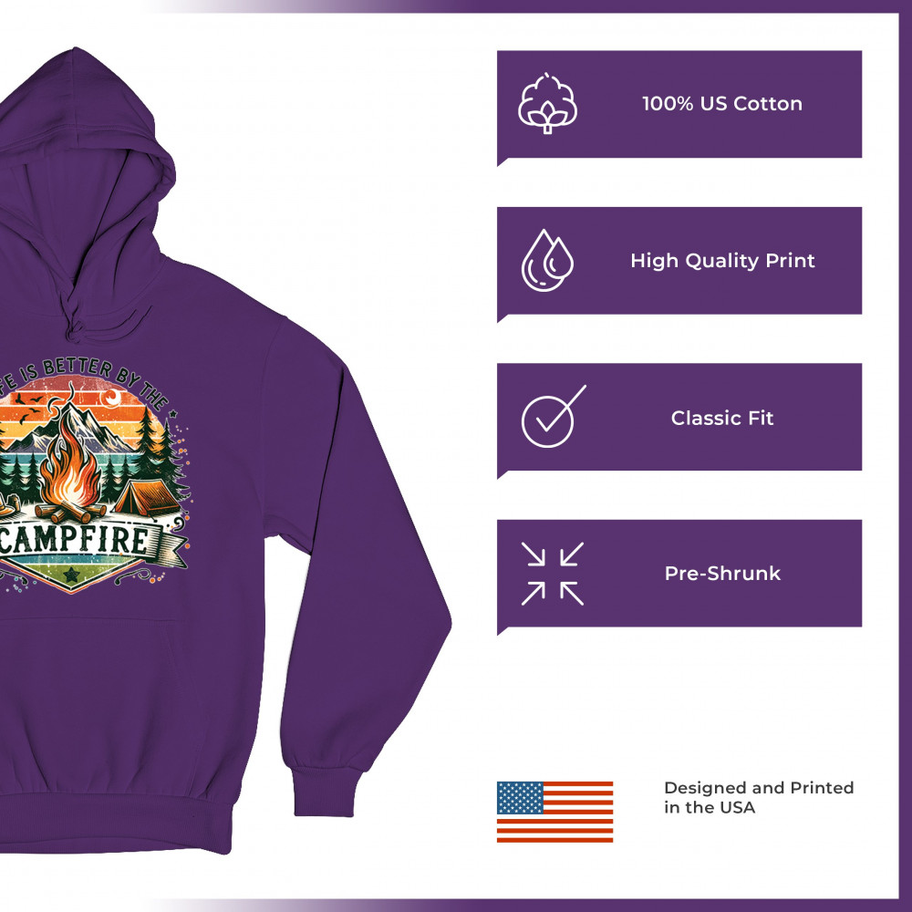 Life is Better by the Campfire brings rustic charm and outdoor adventure together with a glowing fire, mountain scenery, and pine forest. Ideal for forest lovers, campers, and national park explorers, this design evokes wilderness vibes, tent life, and the thrill of travel. Great value for anyone who believes adventure begins under the stars.