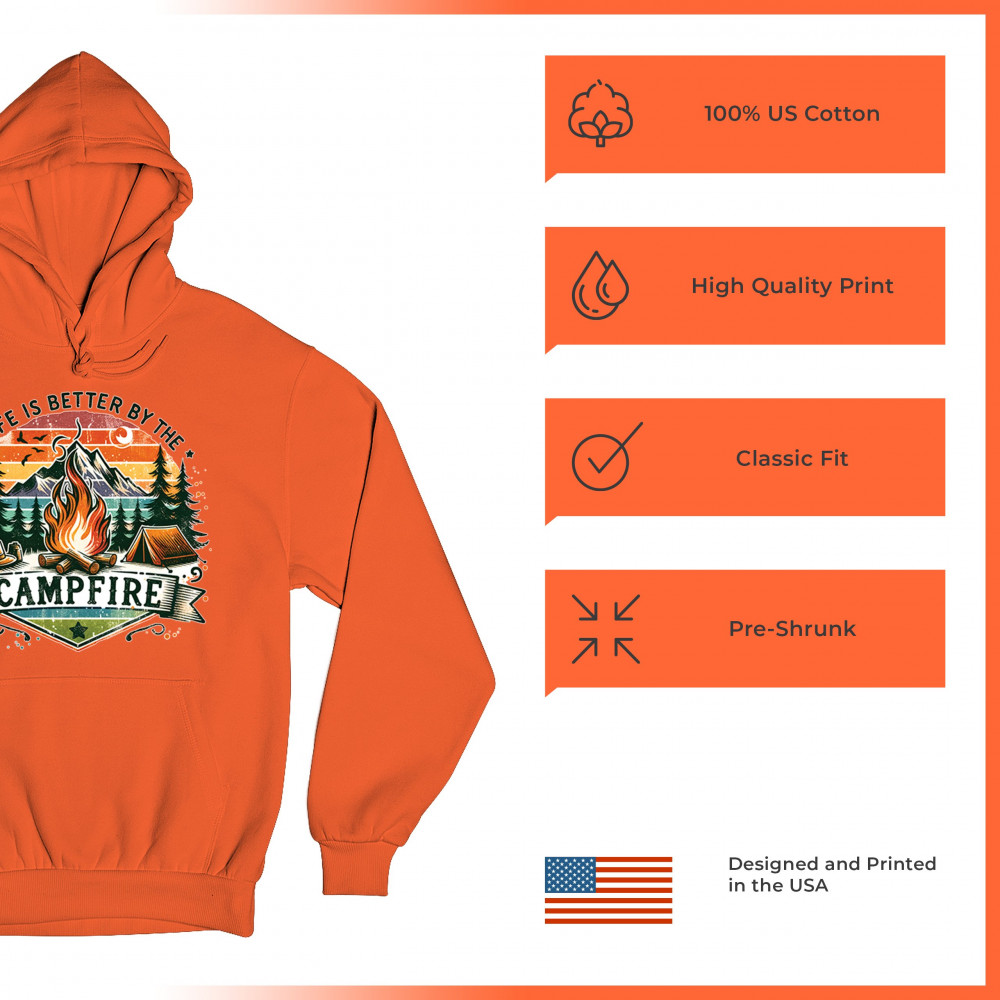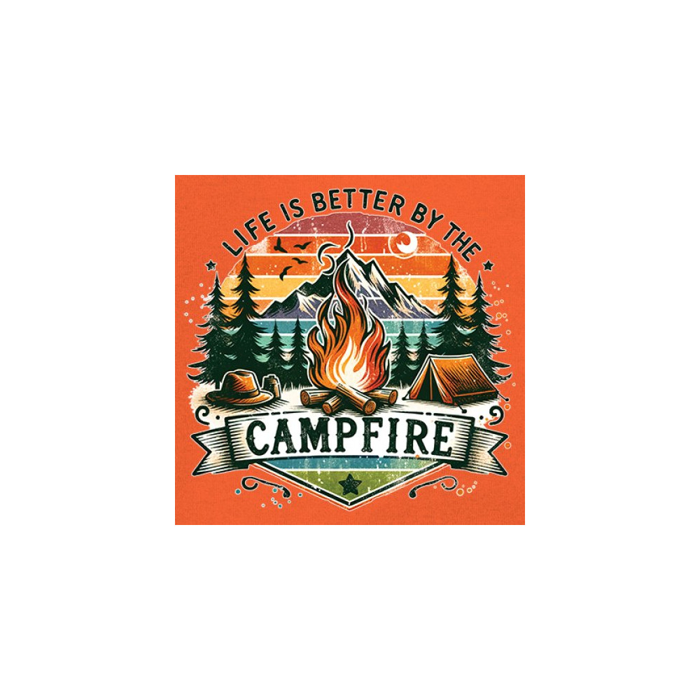 Life is Better by the Campfire brings rustic charm and outdoor adventure together with a glowing fire, mountain scenery, and pine forest. Ideal for forest lovers, campers, and national park explorers, this design evokes wilderness vibes, tent life, and the thrill of travel. Great value for anyone who believes adventure begins under the stars.