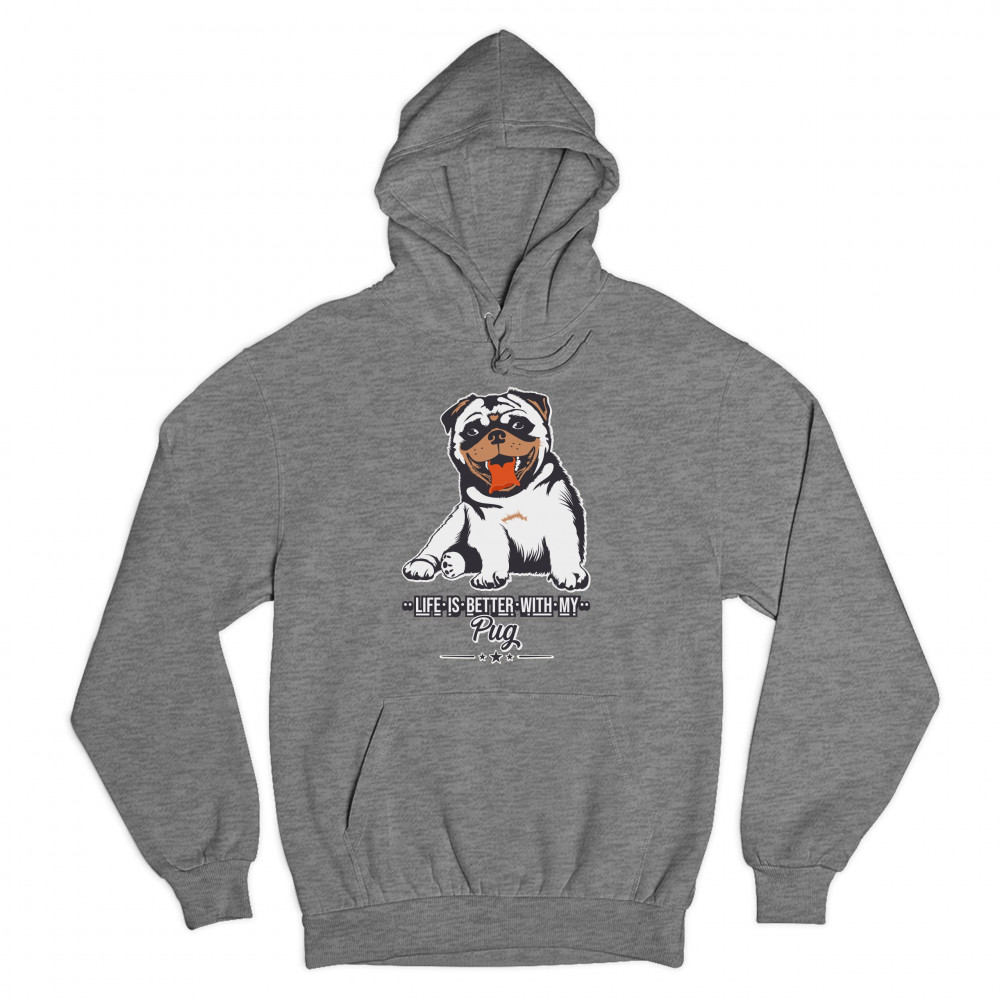 LIFE IS BETTER WITH MY PUG sweatshirt cute pet adorable dog breed hoodie gray