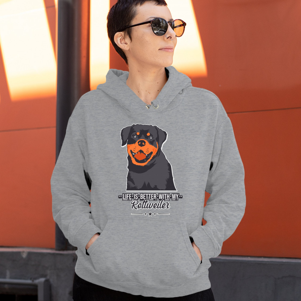 LIFE IS BETTER WITH MY ROTTWEILER sweatshirt rottie pet dog lover hoodie gray