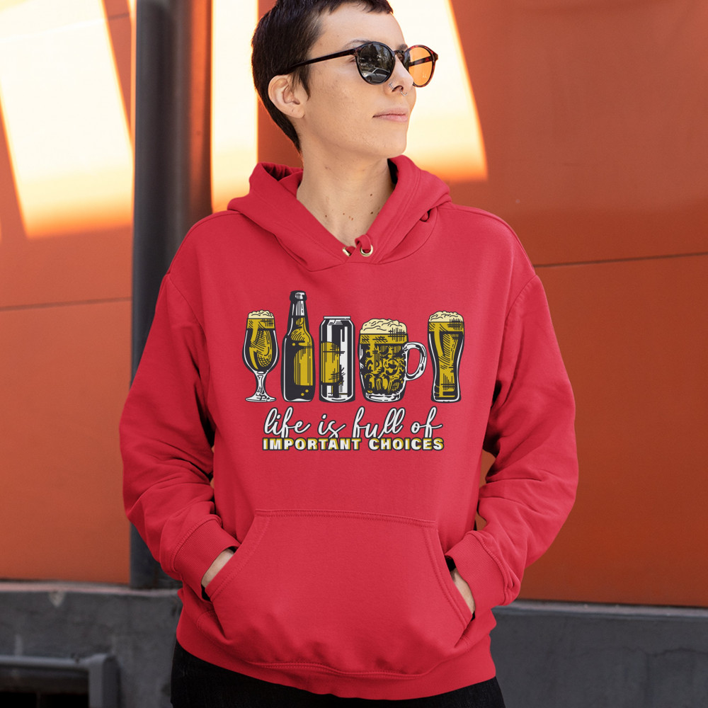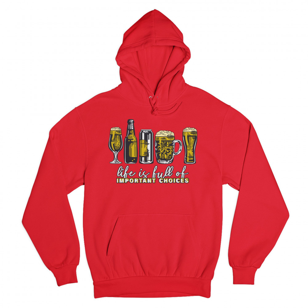 LIFE IS FULL OF IMPORTANT CHOICES sweatshirt funny beer drinking ipa hoodie red