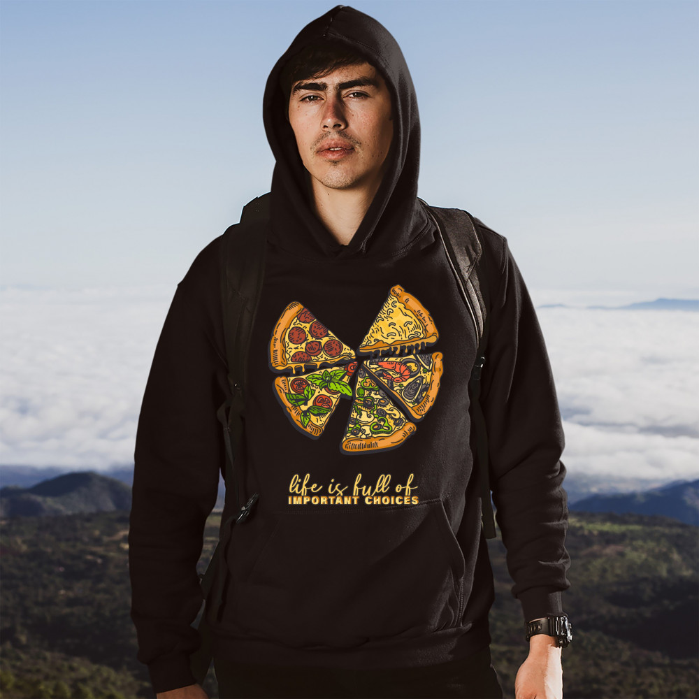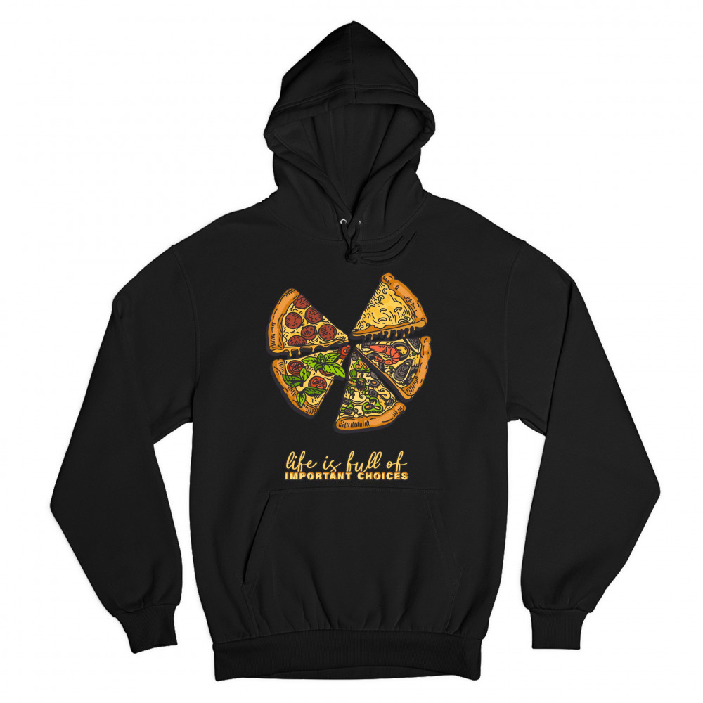 LIFE IS FULL OF IMPORTANT CHOICES sweatshirt funny pepperoni pizza hoodie black