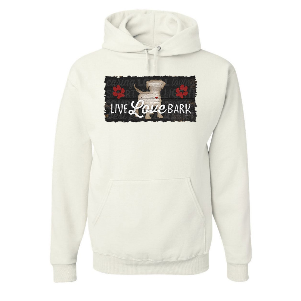 LIVE LOVE BARK hoodie cute dog puppy doggie paw wiggle pet woof sweatshirt white