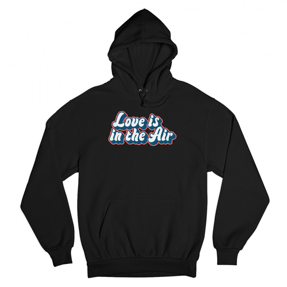 LOVE IS IN THE AIR sweatshirt happy valentine's day romance good vibes hoodie black