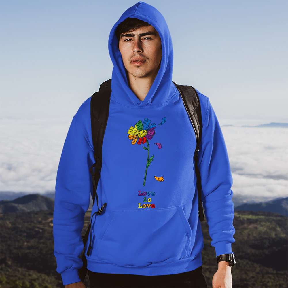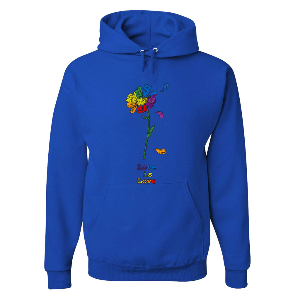 LOVE IS LOVE sweatshirt rainbow flower lgbt acceptance gay pride hoodie royal blue