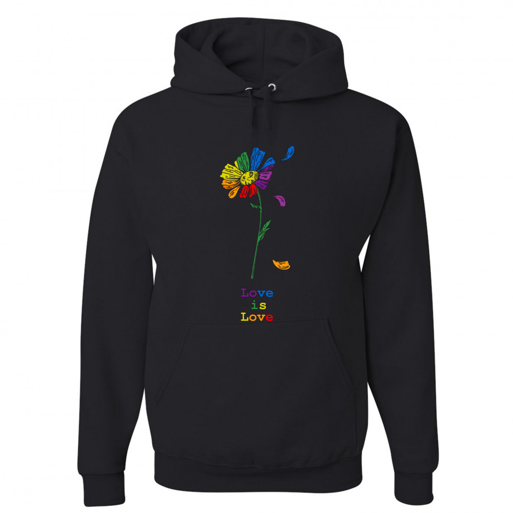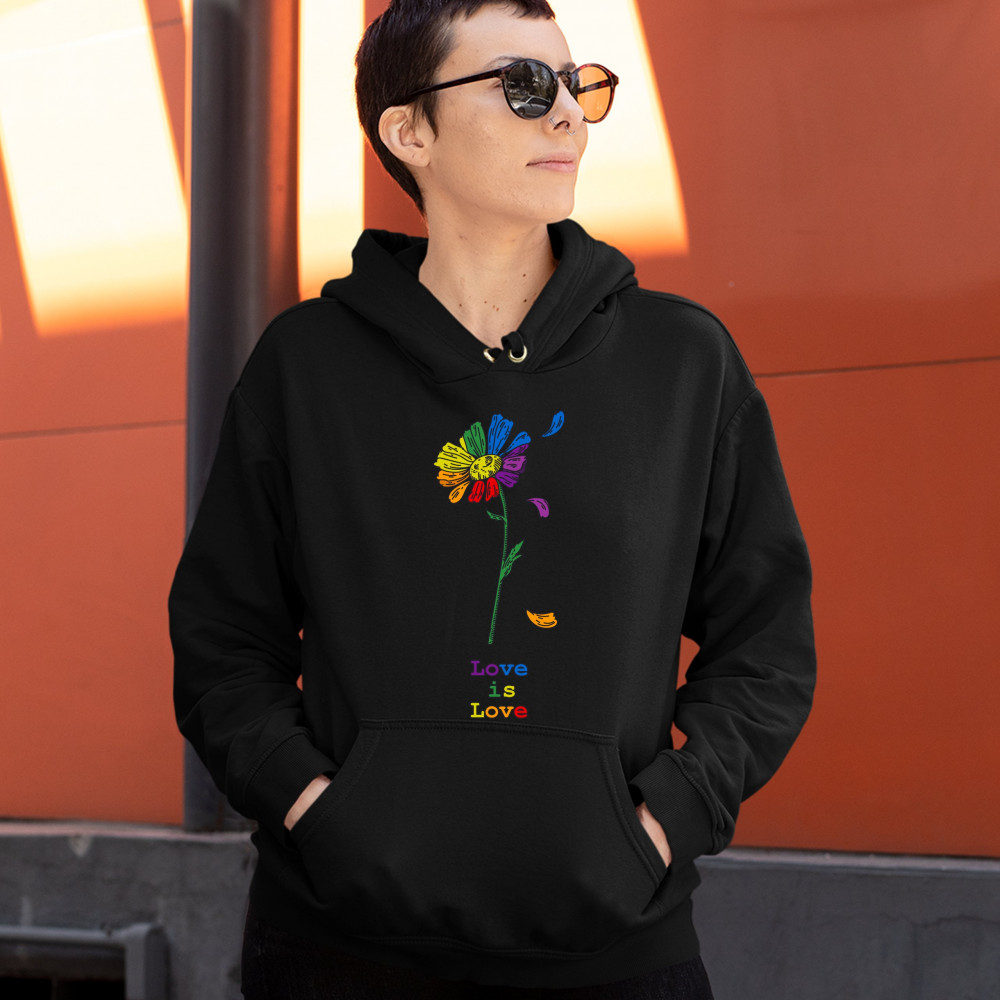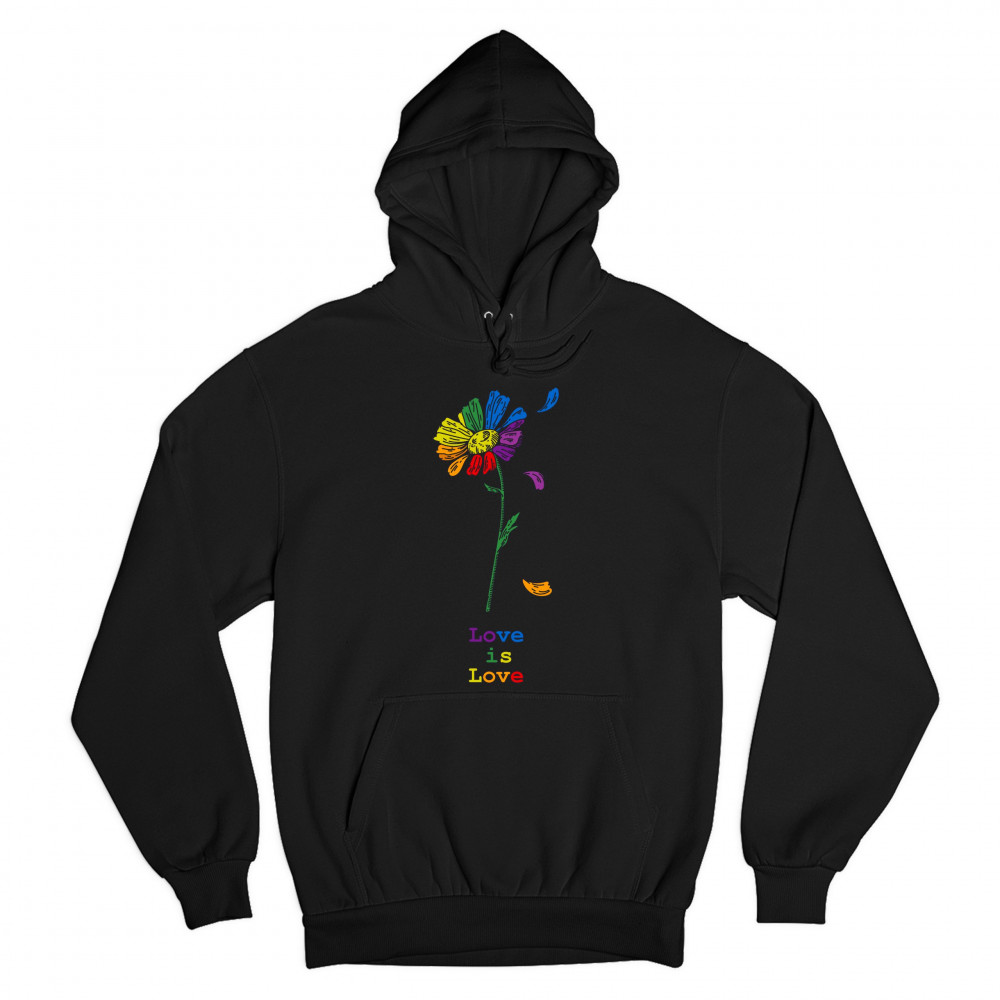 LOVE IS LOVE sweatshirt rainbow flower lgbt acceptance gay pride hoodie black