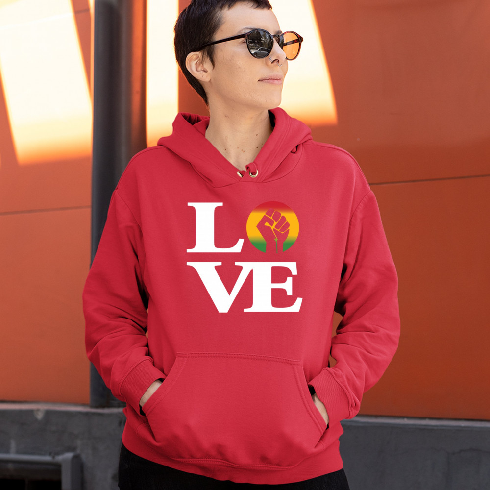 LOVE POWER FIST sweatshirt black lives matter african american hoodie red