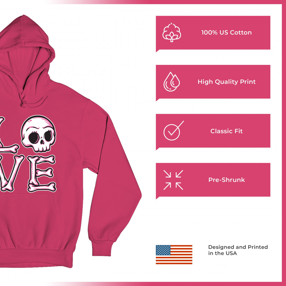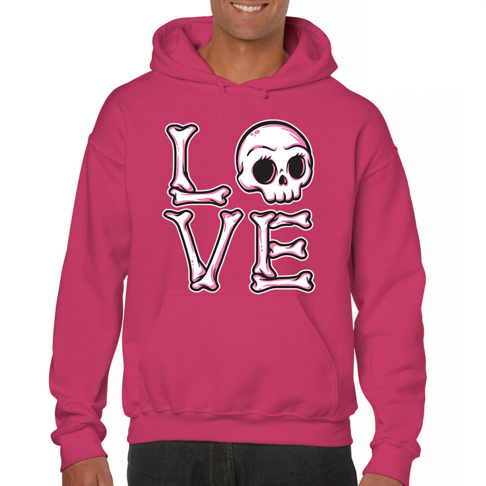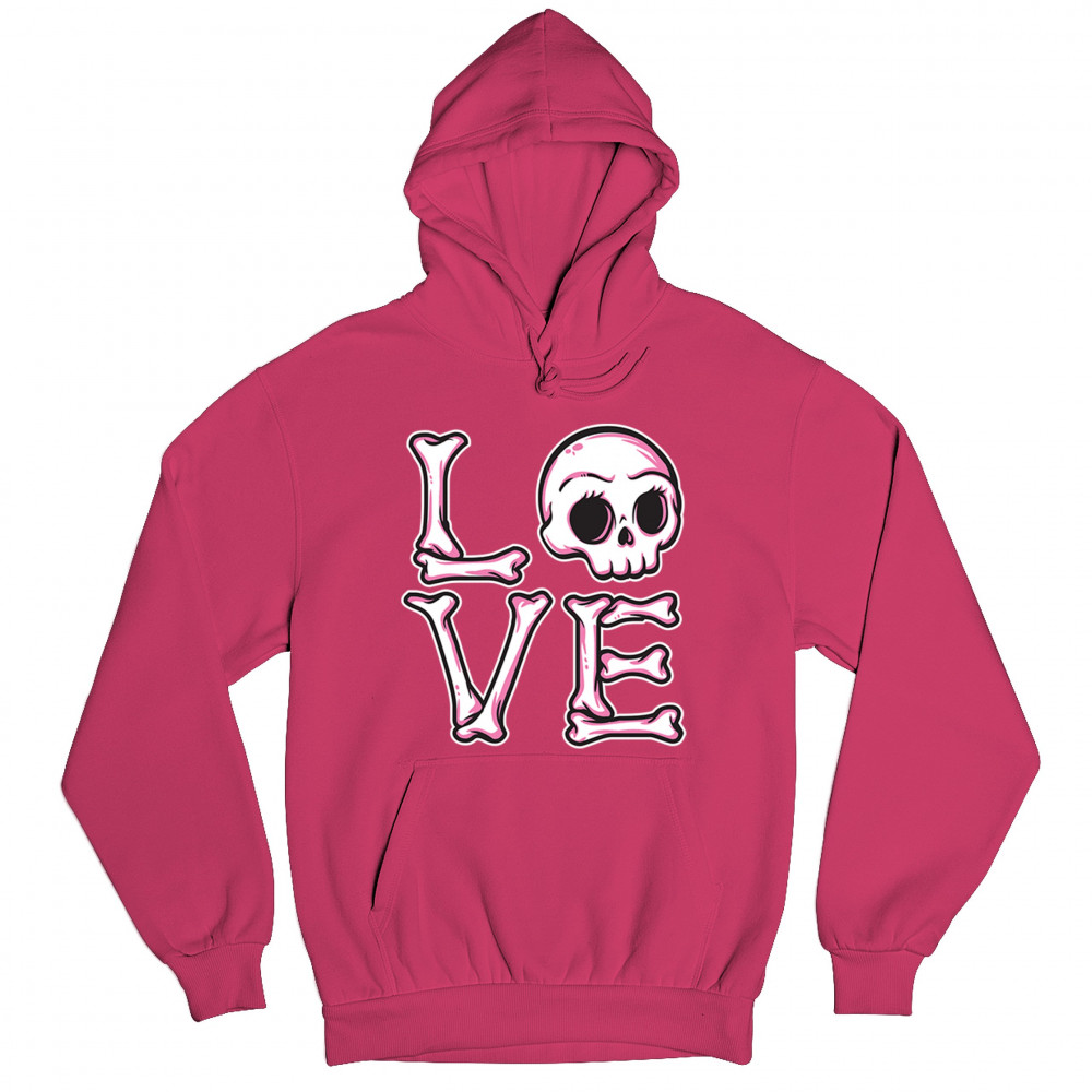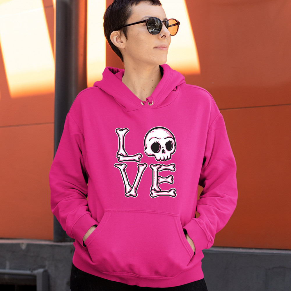 LOVE TEXT SKULL sweatshirt pink bone gothic skeleton spooky halloween hoodie pink