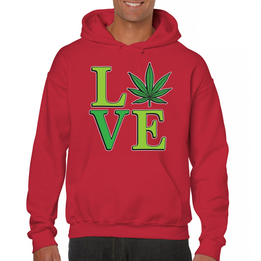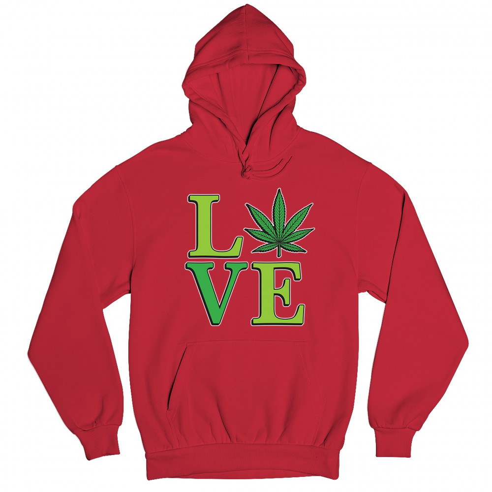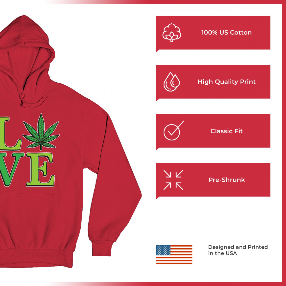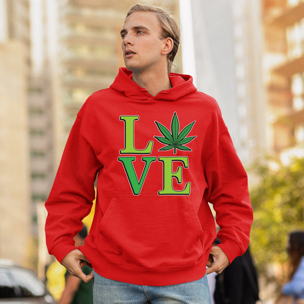 LOVE design with a bold weed leaf. Perfect for 420 fans, stoners, cannabis lifestyle wear, green pride, and marijuana lovers.