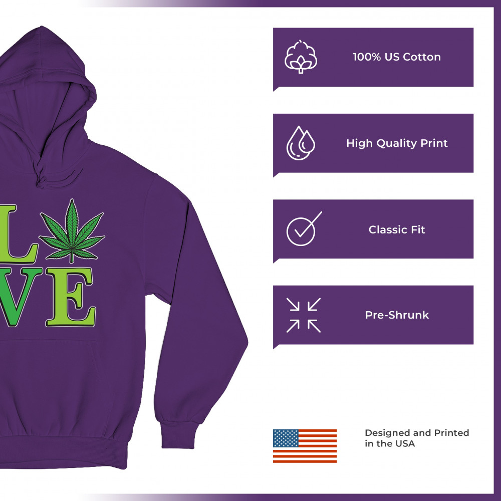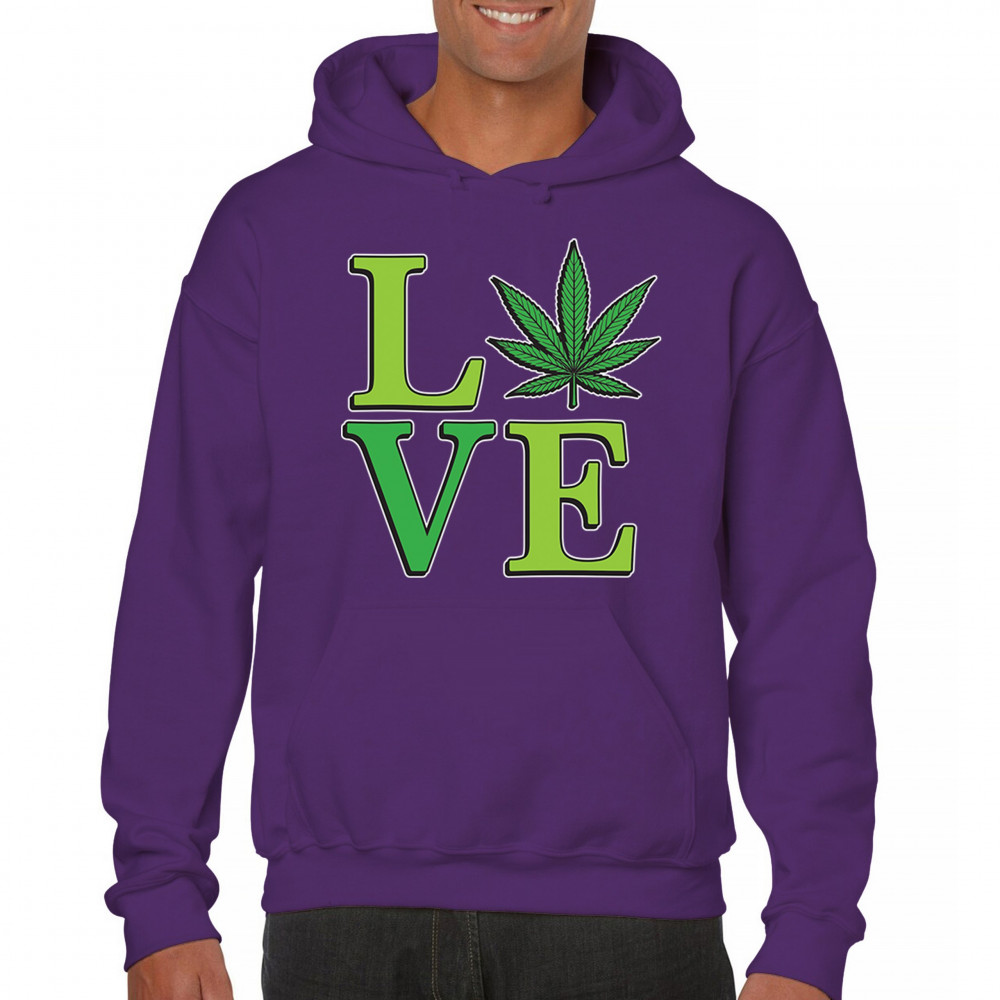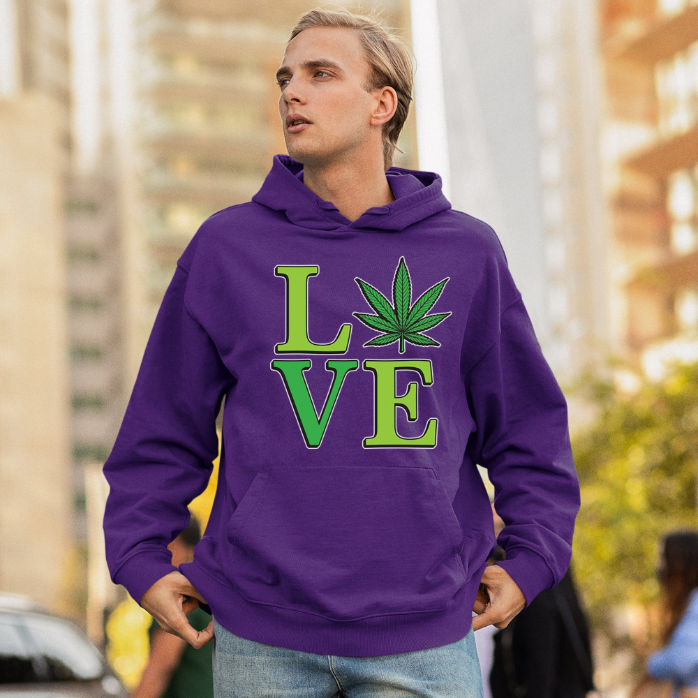 LOVE design with a bold weed leaf. Perfect for 420 fans, stoners, cannabis lifestyle wear, green pride, and marijuana lovers.