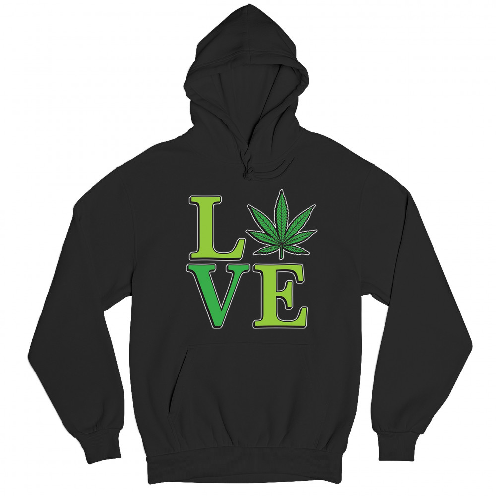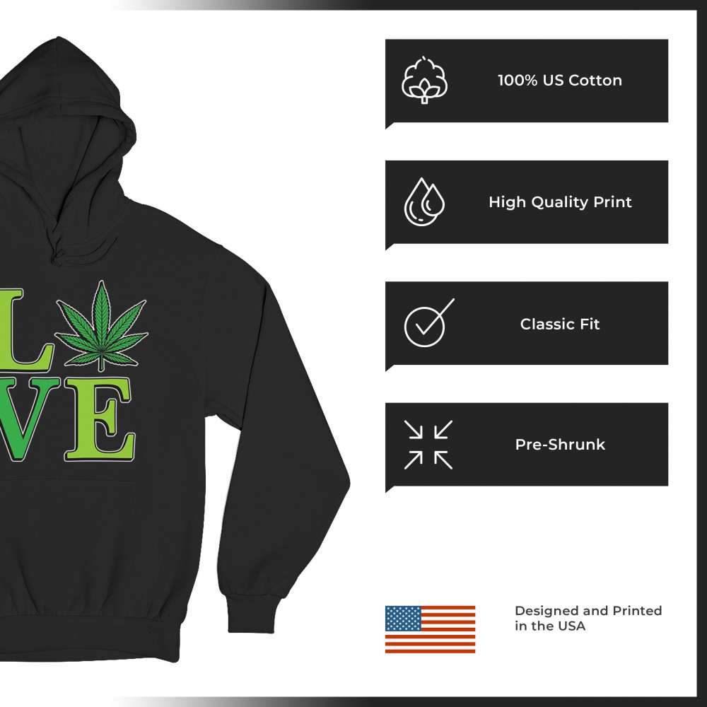 LOVE design with a bold weed leaf. Perfect for 420 fans, stoners, cannabis lifestyle wear, green pride, and marijuana lovers.