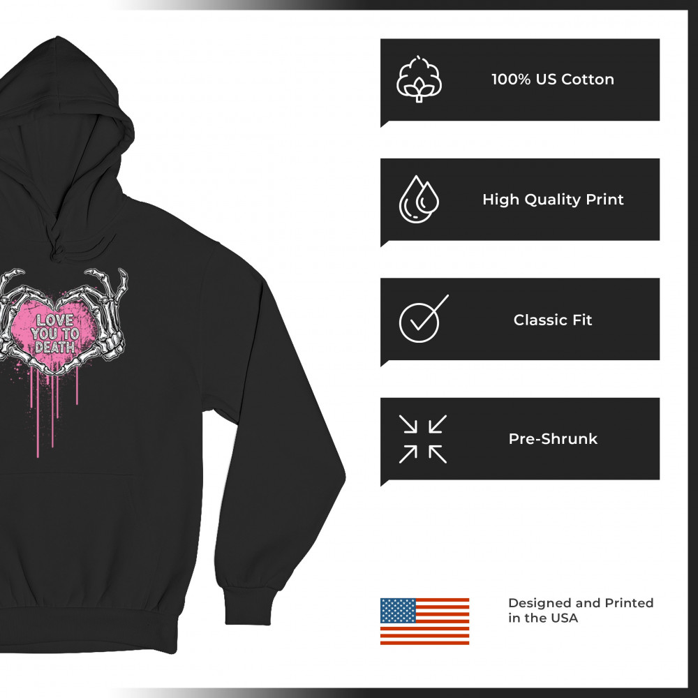 LOVE YOU TO DEATH sweatshirt gothic heart romance spooky halloween hoodie black