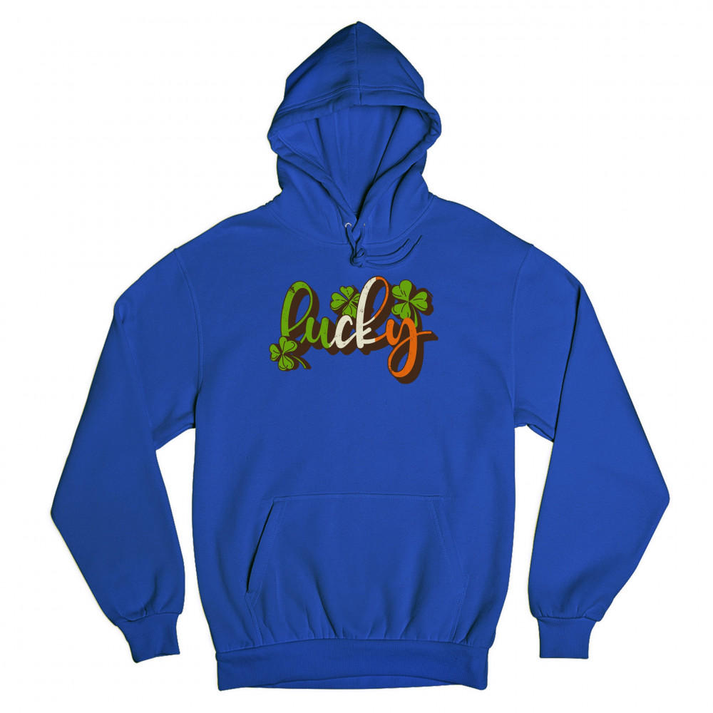 LUCKY sweatshirt irish st. patrick's day leprechaun elves shenanigans hoodie royal blue