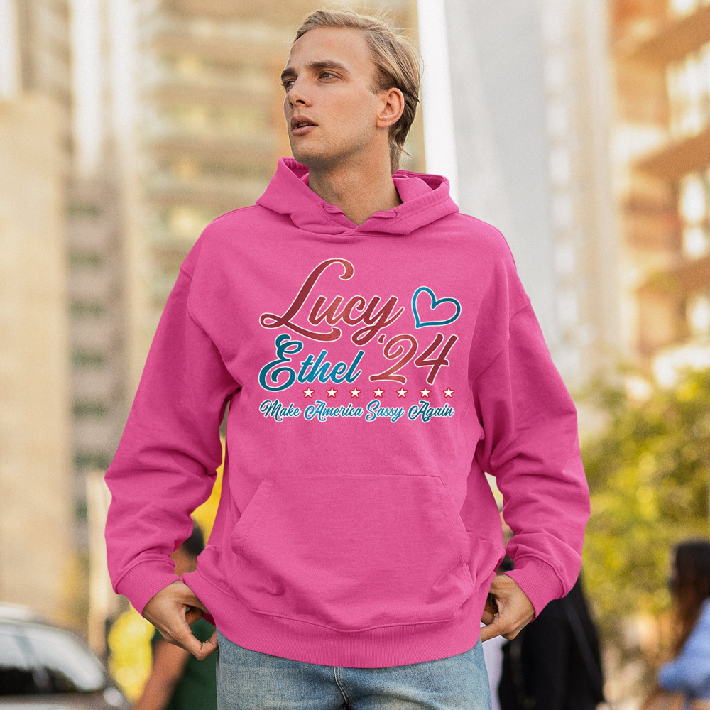 Step back into the golden age of television with this unique election-themed design. Perfect for fans of classic American TV, this design blends nostalgia with modern-day election humor. Whether you're wearing it to make a statement or just for fun, this design is sure to turn heads and spark conversations. Ideal for casual wear, themed parties, or as a thoughtful gift for TV buffs. Celebrate the past while looking ahead with this delightful and sassy design.