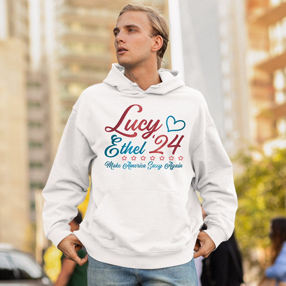 Step back into the golden age of television with this unique election-themed design. Perfect for fans of classic American TV, this design blends nostalgia with modern-day election humor. Whether you're wearing it to make a statement or just for fun, this design is sure to turn heads and spark conversations. Ideal for casual wear, themed parties, or as a thoughtful gift for TV buffs. Celebrate the past while looking ahead with this delightful and sassy design.